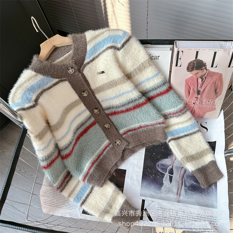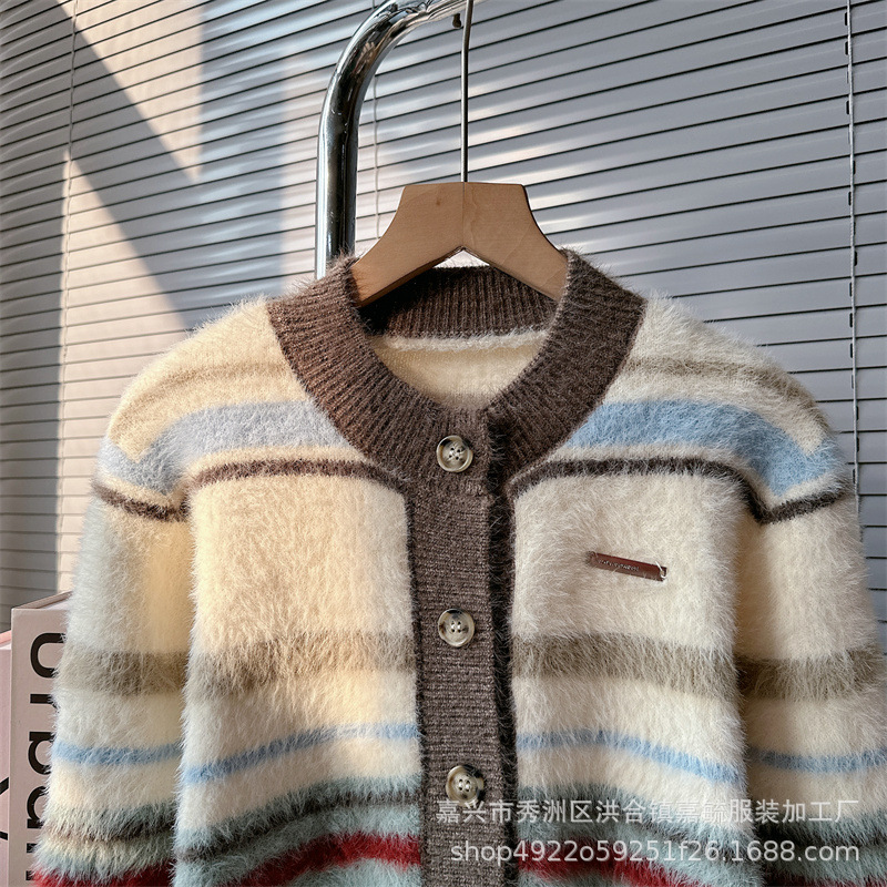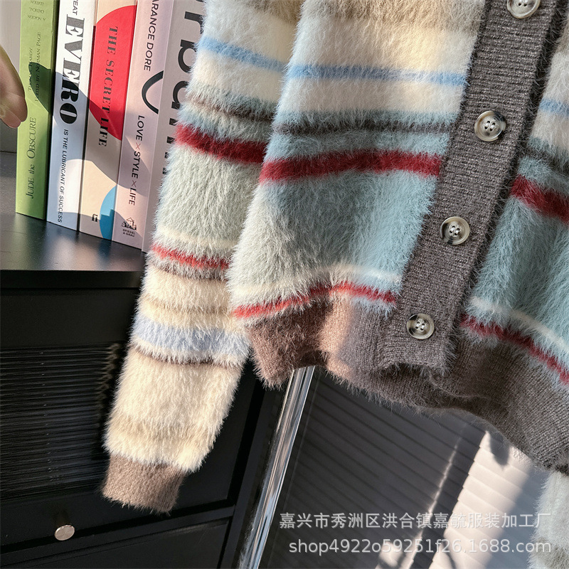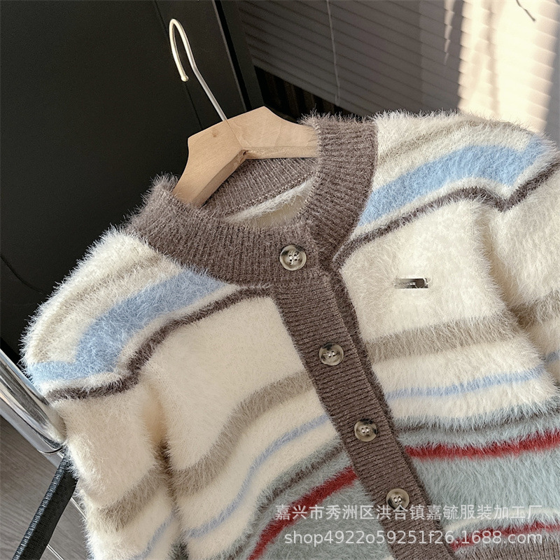 게으른 스타일 하이 엔드 슈퍼 잘 생긴 스트라이프 니트 카디건 스웨터 코트 여성 2023 가을과 겨울 새로운 프랑스 탑