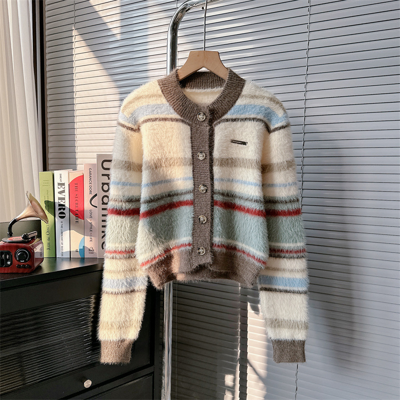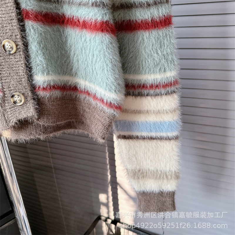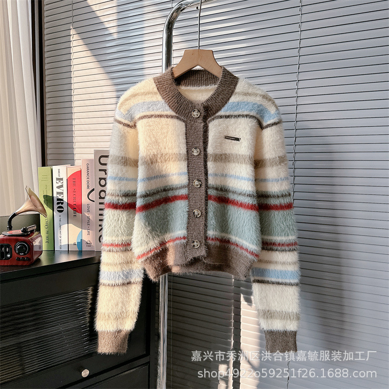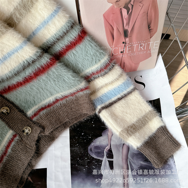 게으른 스타일 하이 엔드 슈퍼 잘 생긴 스트라이프 니트 카디건 스웨터 코트 여성 2023 가을과 겨울 새로운 프랑스 탑스토어 가기
