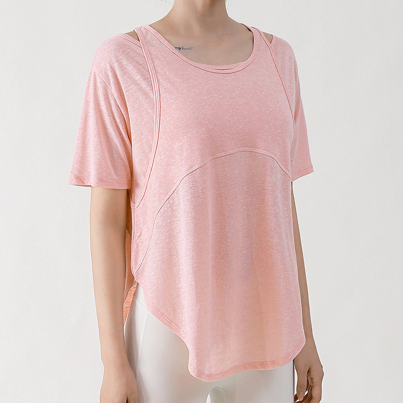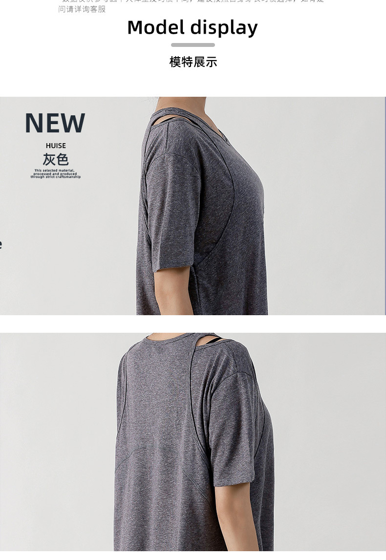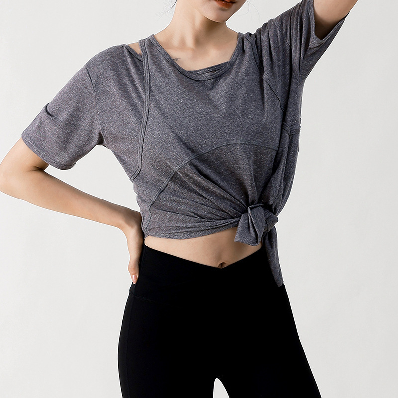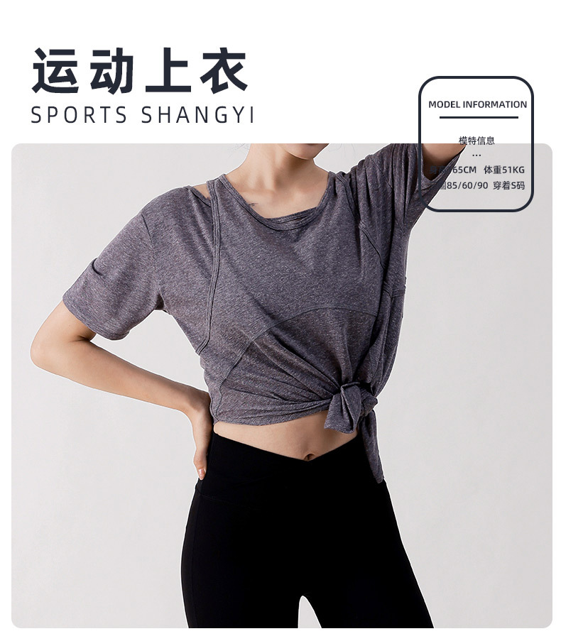 Wuxi Guiyi 새로운 유럽과 미국의 요가 세트 여성 스포츠 러닝 느슨한 반팔 탑 얇은 플러스 사이즈 요가 세트스토어 가기
