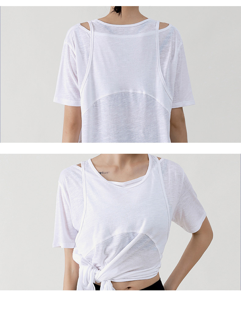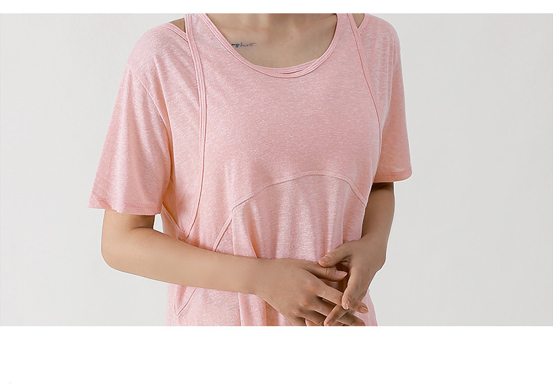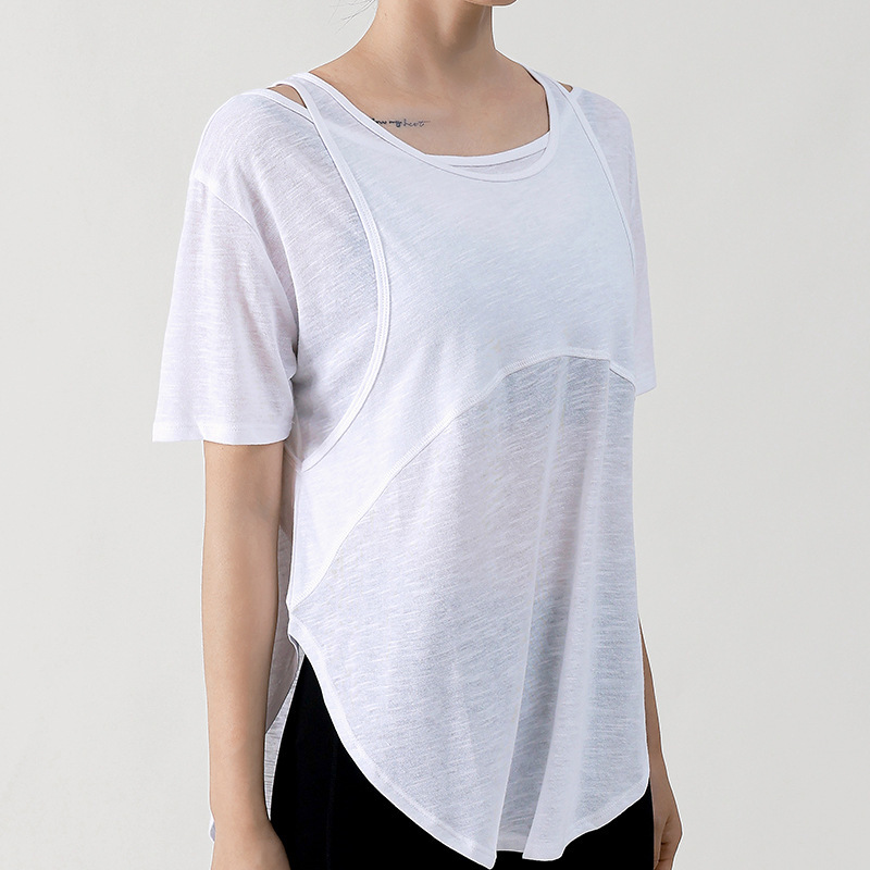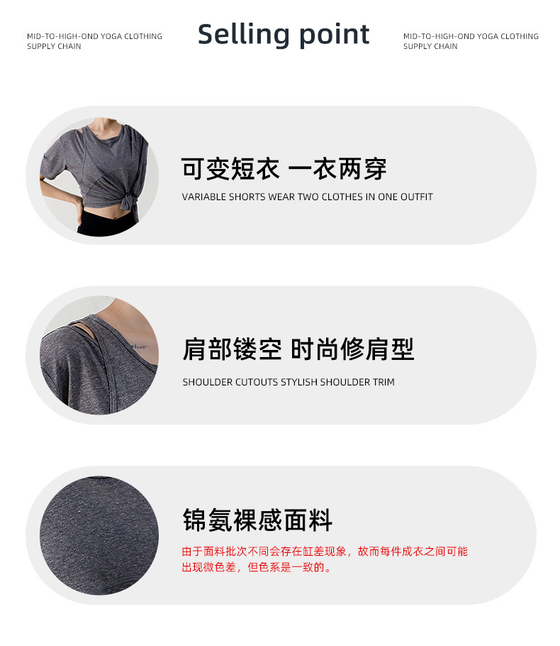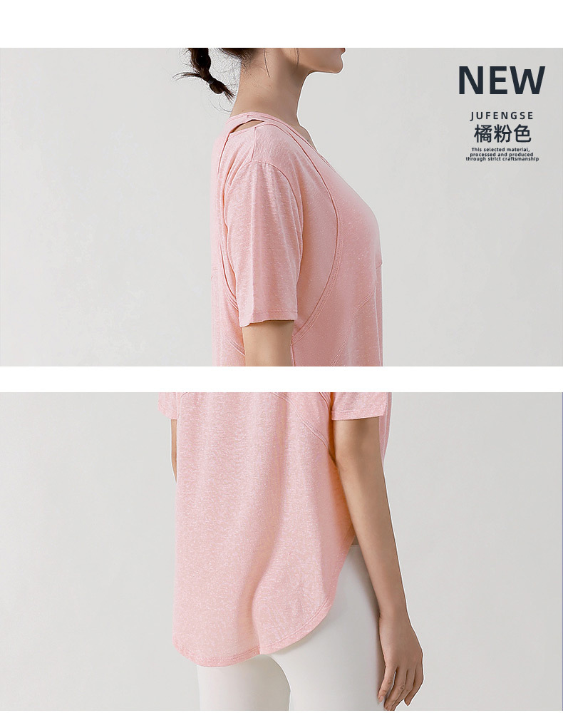 Wuxi Guiyi 새로운 유럽과 미국의 요가 세트 여성 스포츠 러닝 느슨한 반팔 탑 얇은 플러스 사이즈 요가 세트스토어 가기