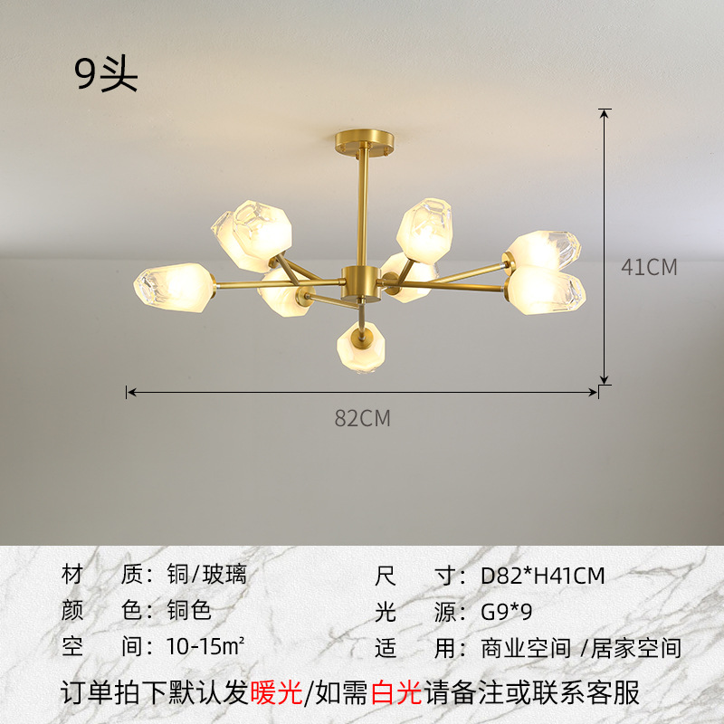 모든 구리 포스트 모던 샹들리에 조명 럭셔리 간단한 북유럽 거실 식당 침실 크리스탈 램프 조명 분자 램프 대기