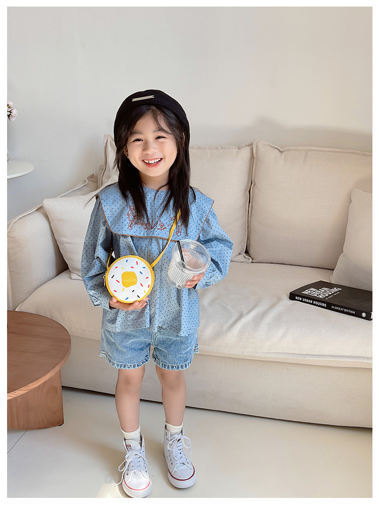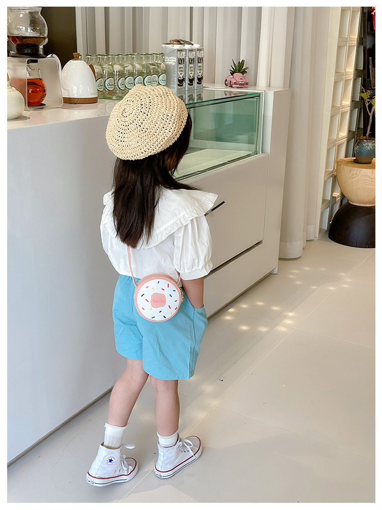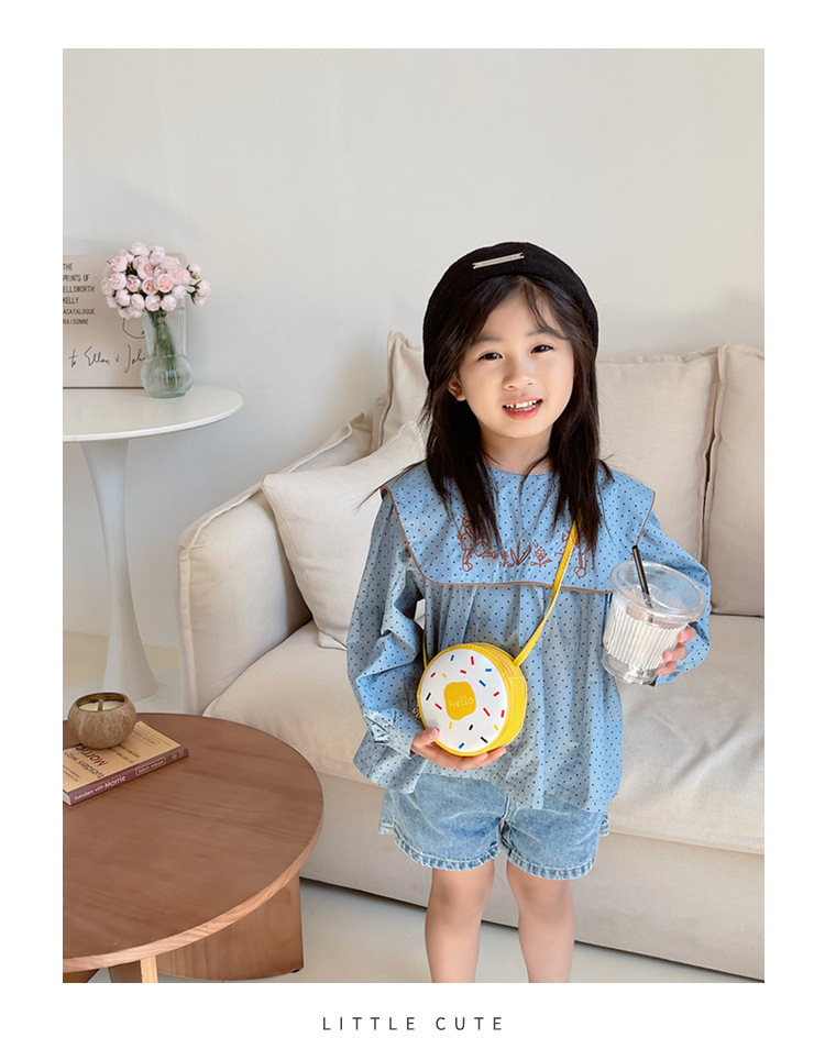 귀여운 여아 작은 가방 2023 새로운 귀여운 어린이 변경 크로스 바디 백 만화 서양 스타일 도넛 숄더 백스토어 가기