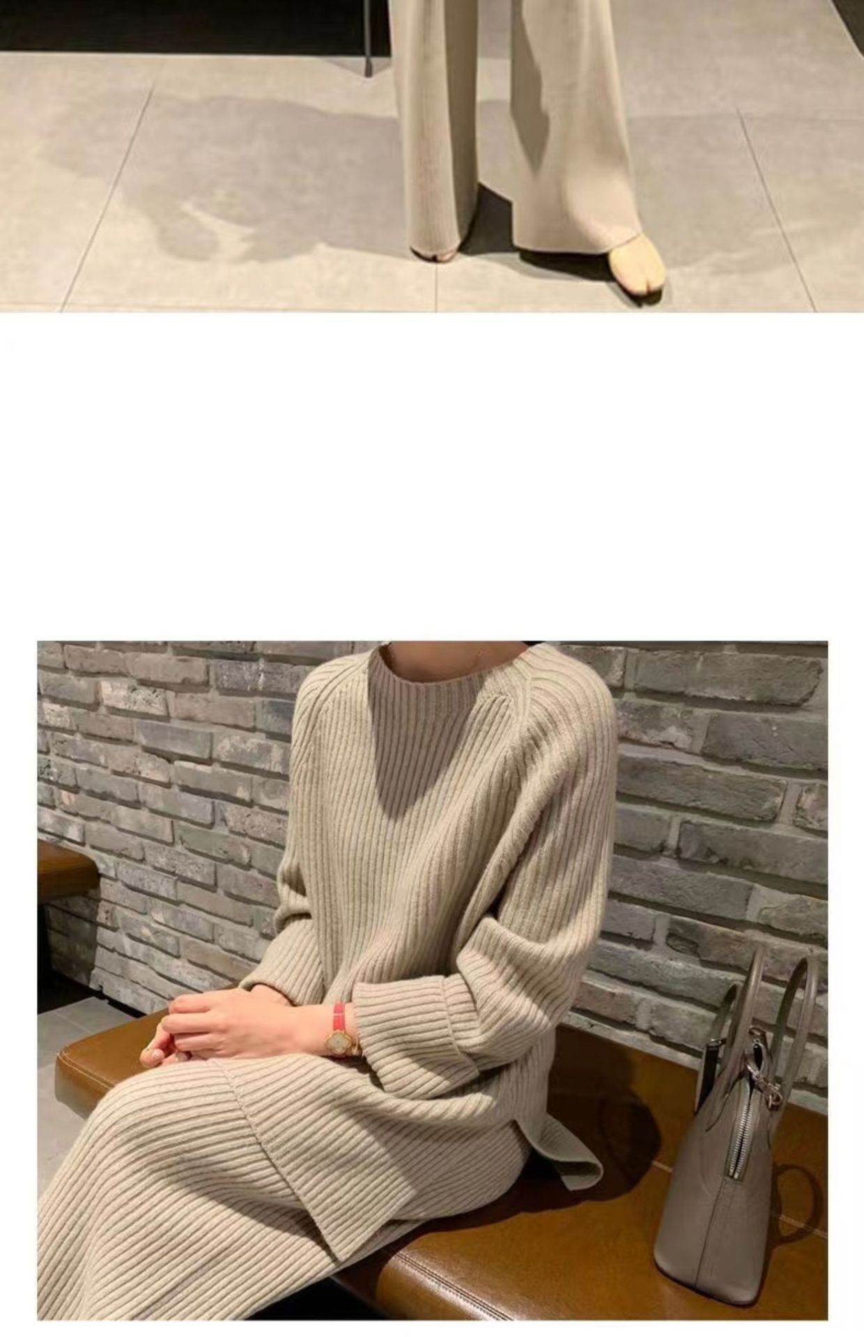 2025 봄, 가을 새로운 스타일의 레트로 루즈 슬릿 스웨터와 와이드 팬츠, 여성을 위한 패셔너블한 연령 감소 니트 정장 팬츠스토어 가기