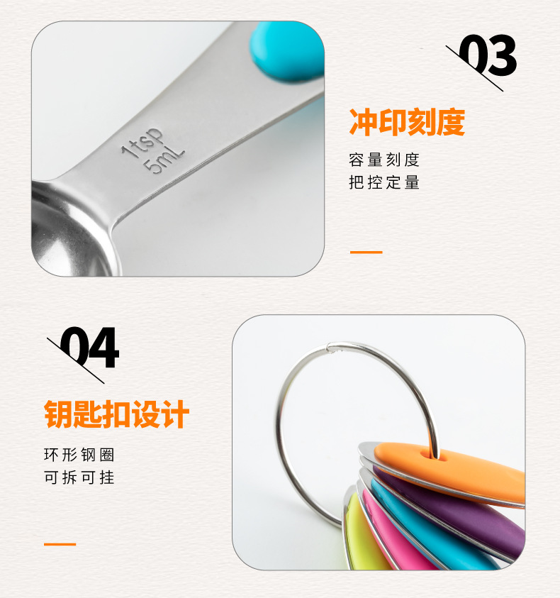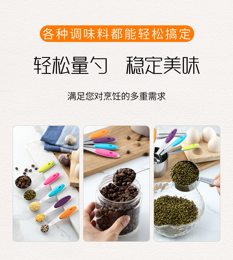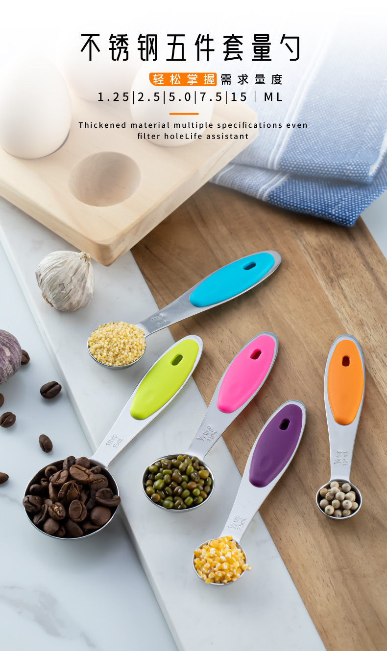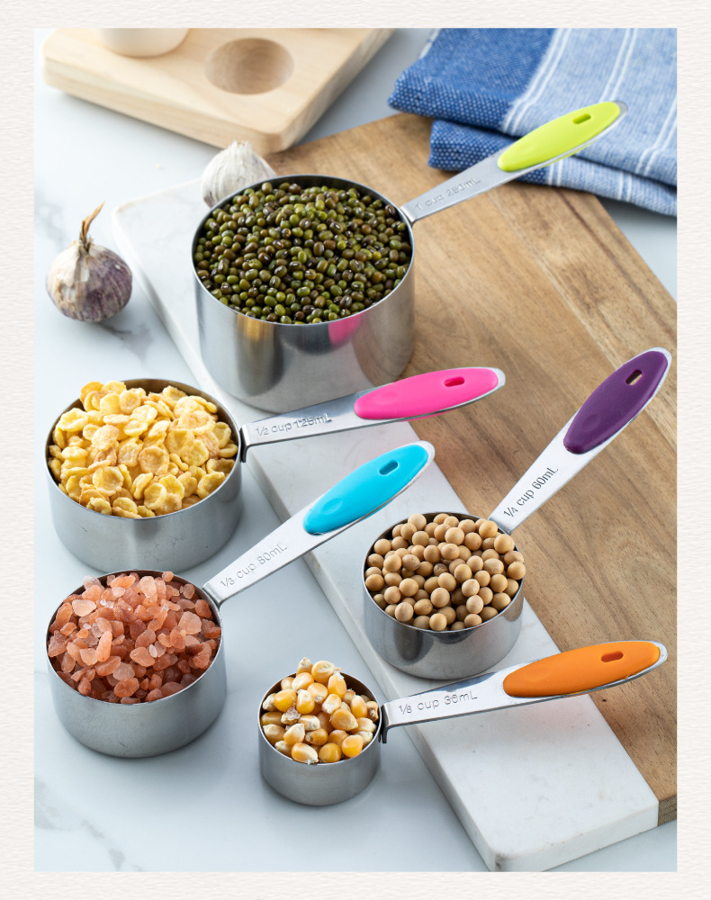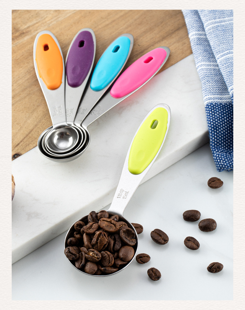 스테인레스 스틸 측정 숟가락 실리콘 핸들 측정 컵 측정 숟가락 5 피스 세트 베이킹 측정 컵 측정 숟가락 세트
