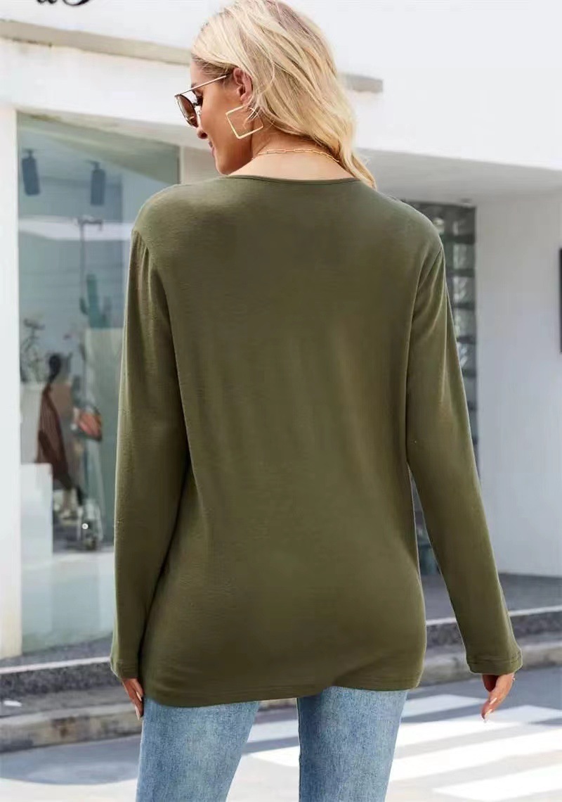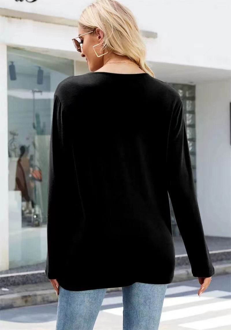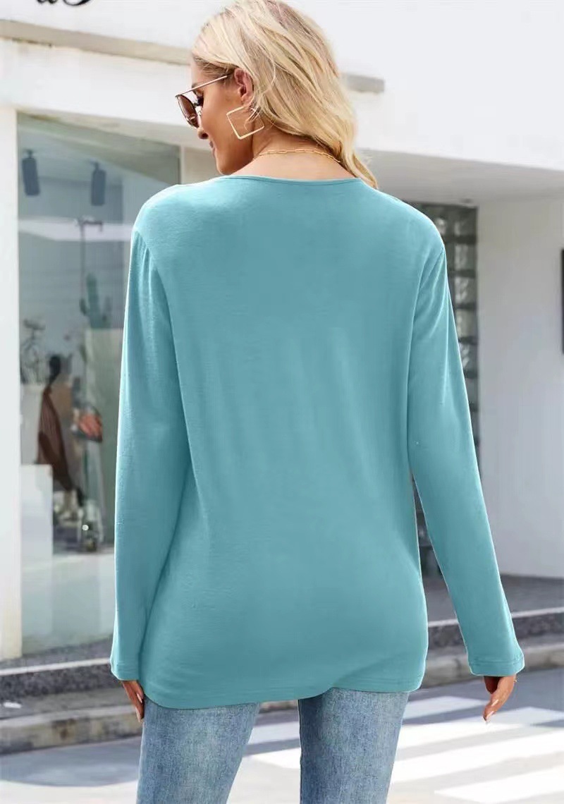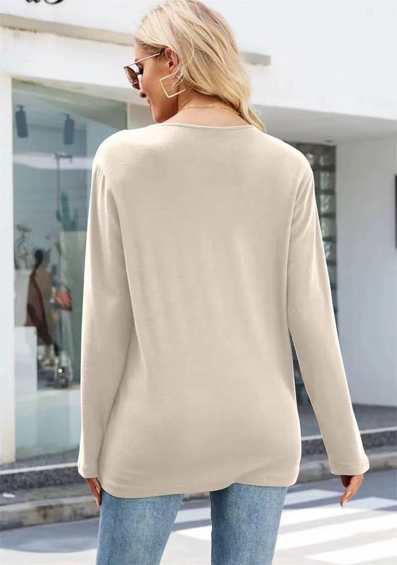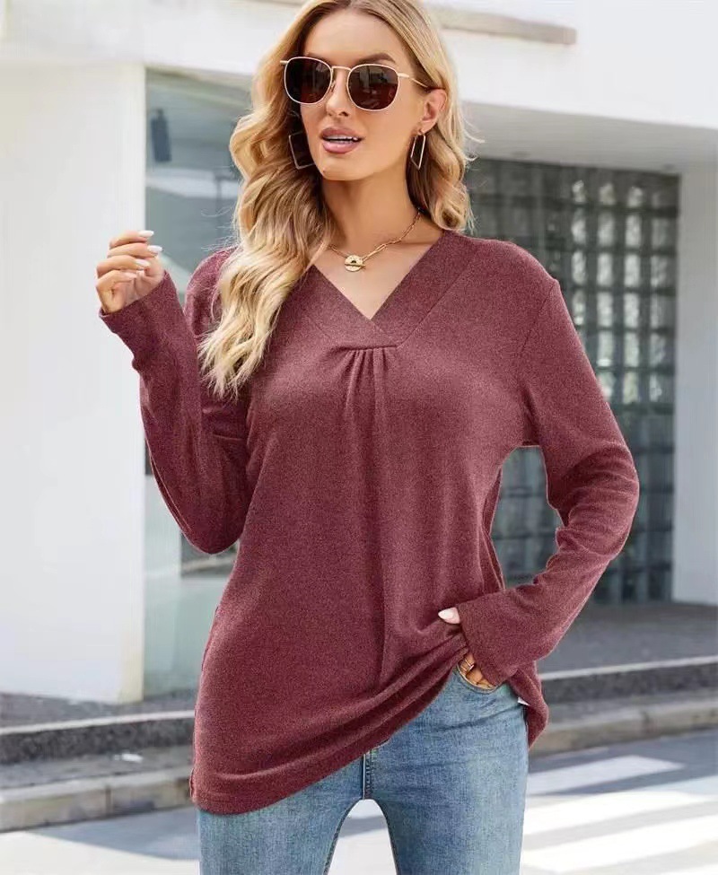 유럽과 미국의 국경 아마존 여성 2023 봄과 가을 새로운 패션 V-Neck Pleated 느슨한 긴팔 캐주얼 여성 티셔츠