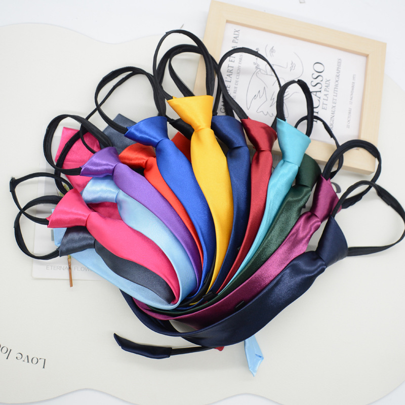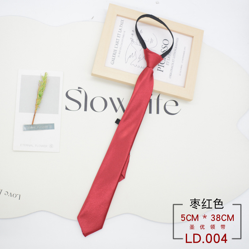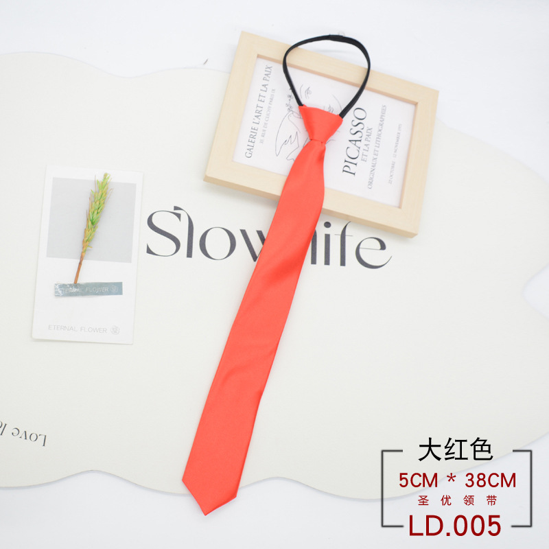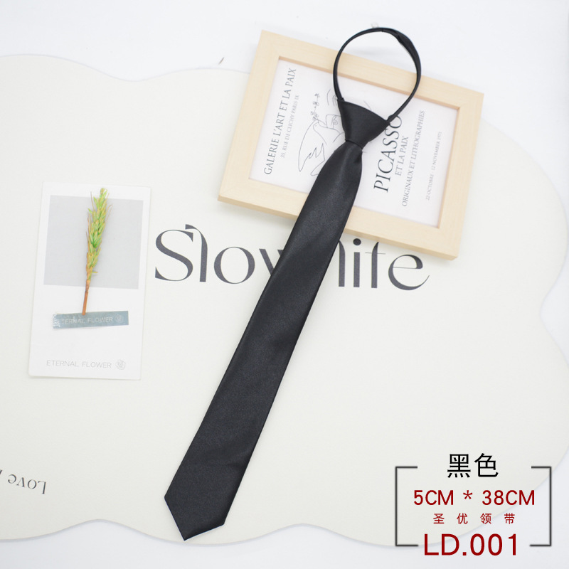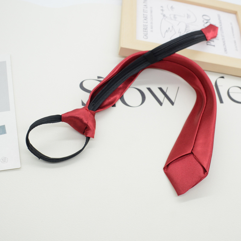 넥타이 여자의 한국식 일본 대학 스타일 매듭없는 지퍼 학생 게으른 당기기 쉬운 단색 블랙 레드