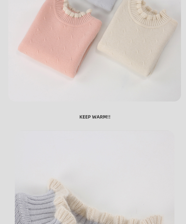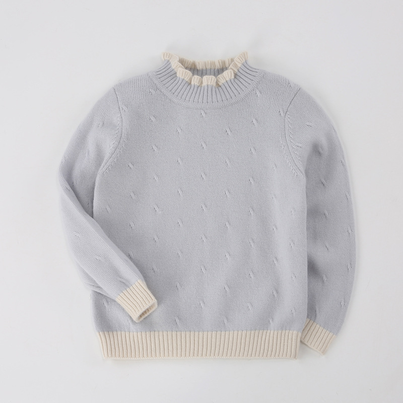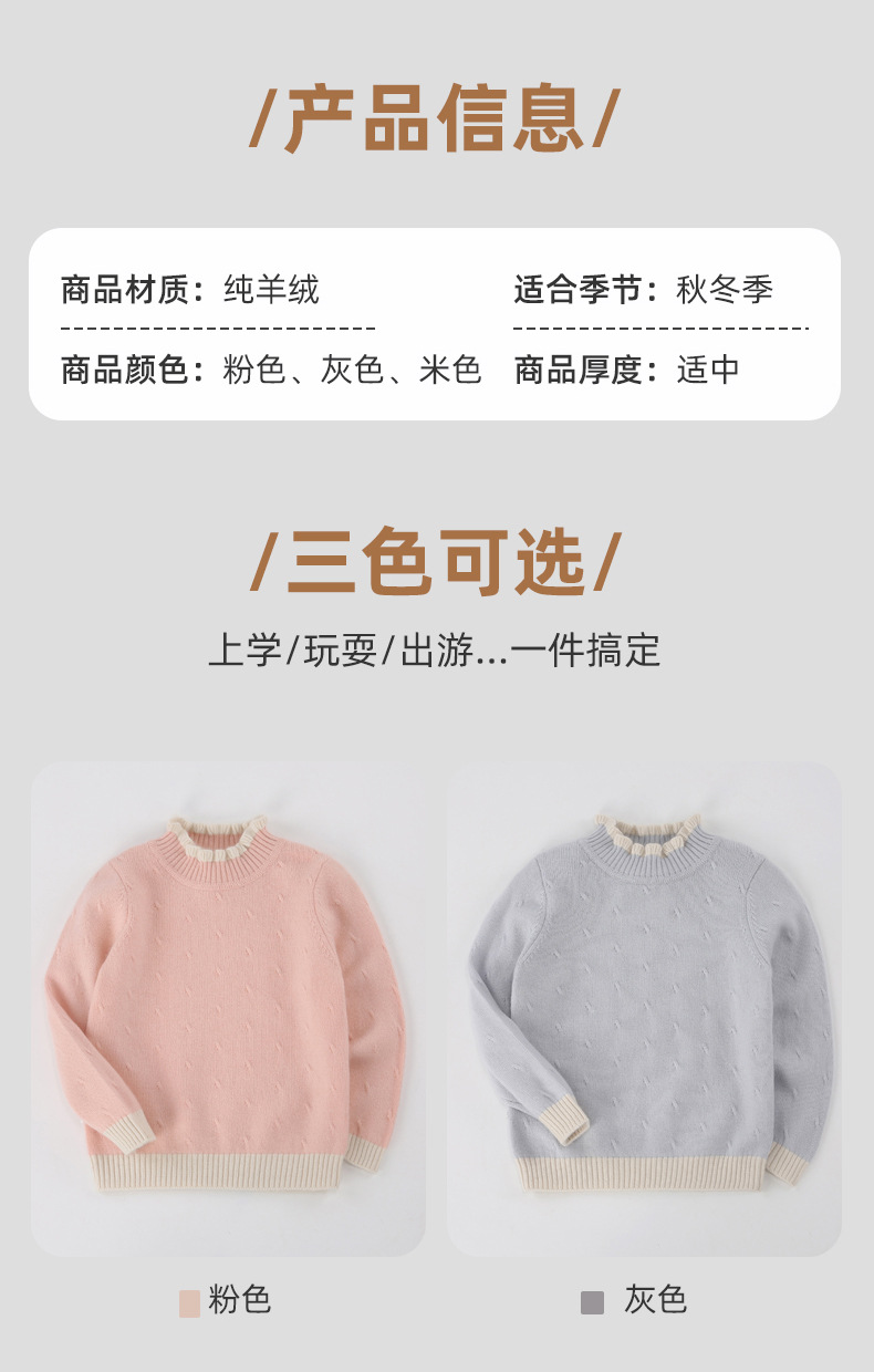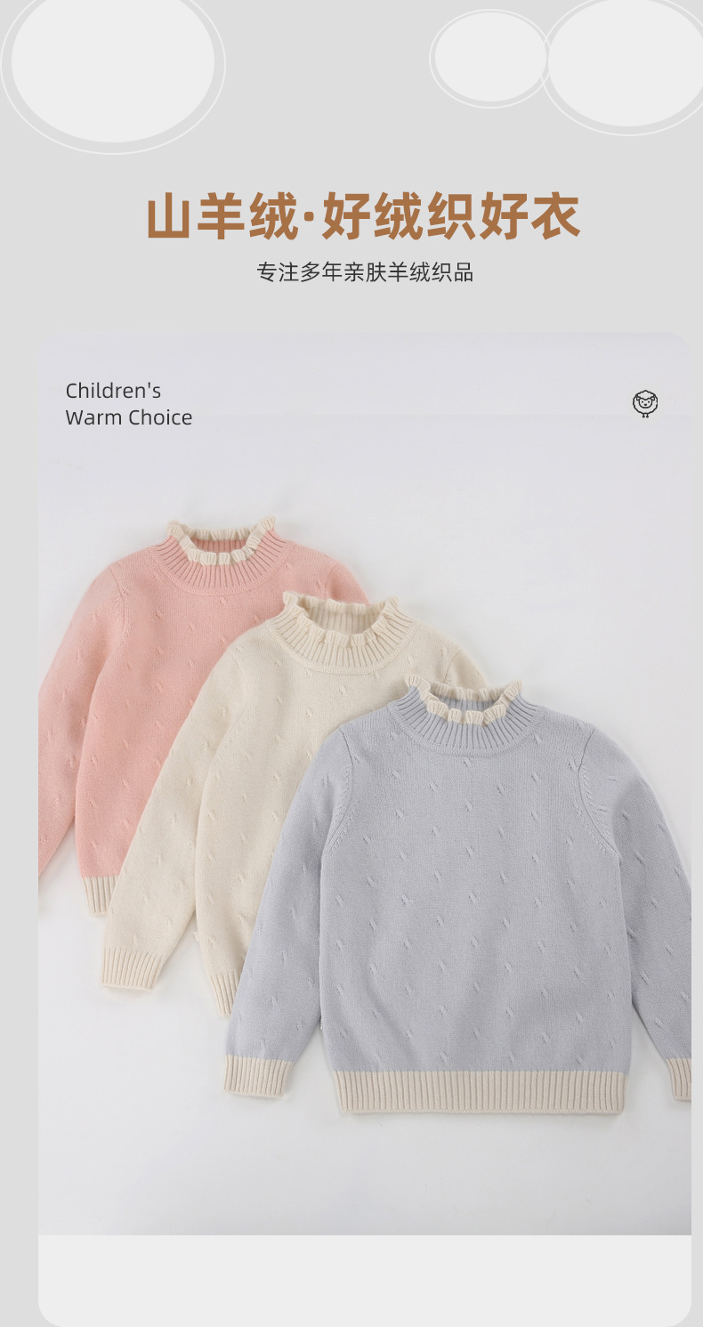 어린 양 점프 2024 가을과 겨울 새 여아 캐시미어 스웨터 어린이 니트 스웨터 캔디 컬러 대형 어린이를위한 미드 하이 칼라