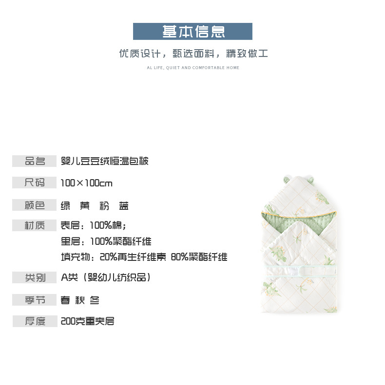 신생아 Doudou 벨벳 가방 이불 신생아 일정 온도 이불 순면 가을과 겨울 아기 이불 포대기 방 용품