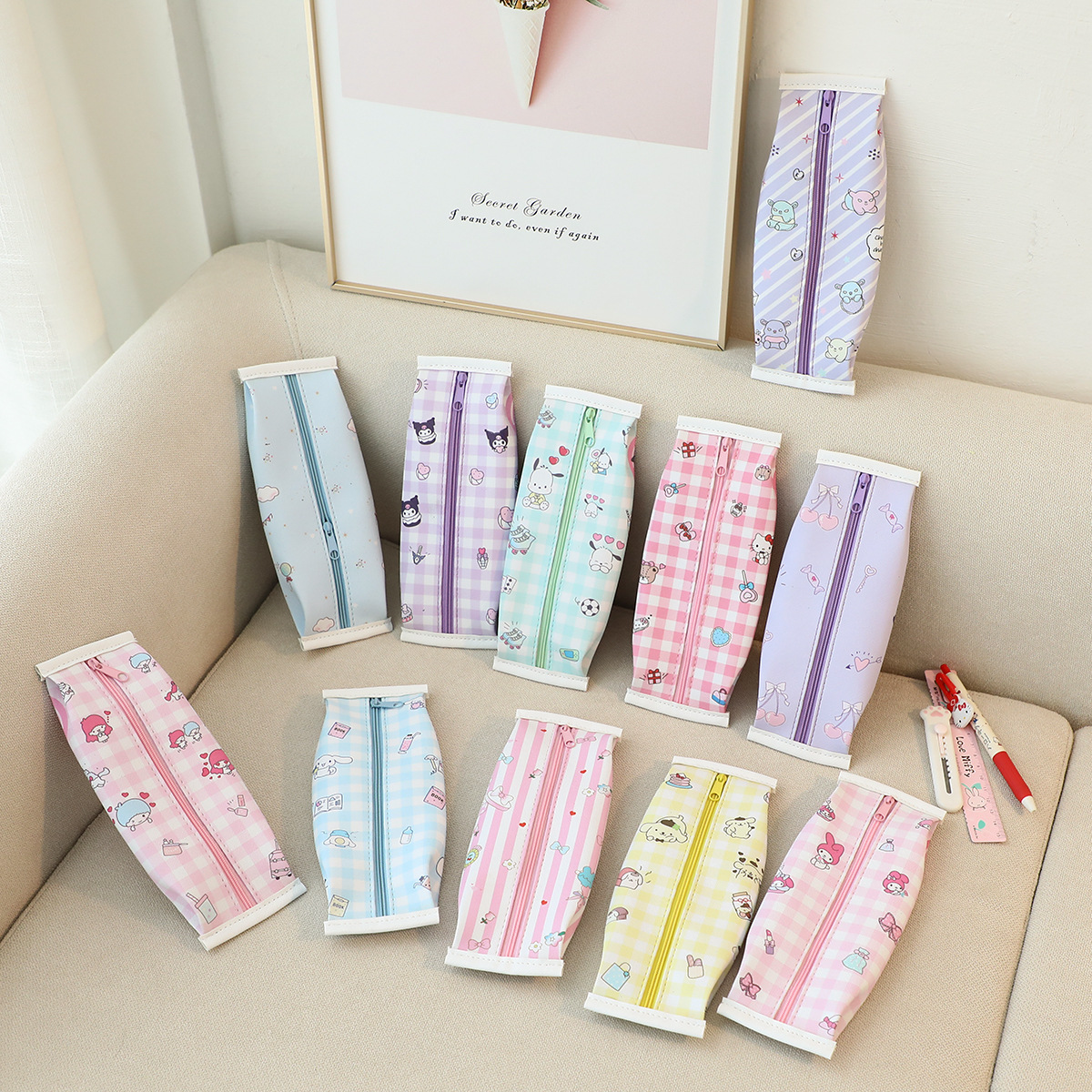 만화 귀여운 간식 모양 pu 연필 가방 Kulomi 화이트 개 문구 가방 창조적 인 지퍼 연필 보관 가방