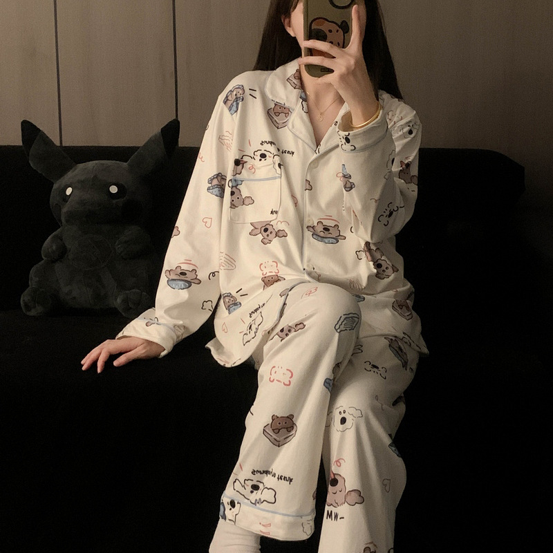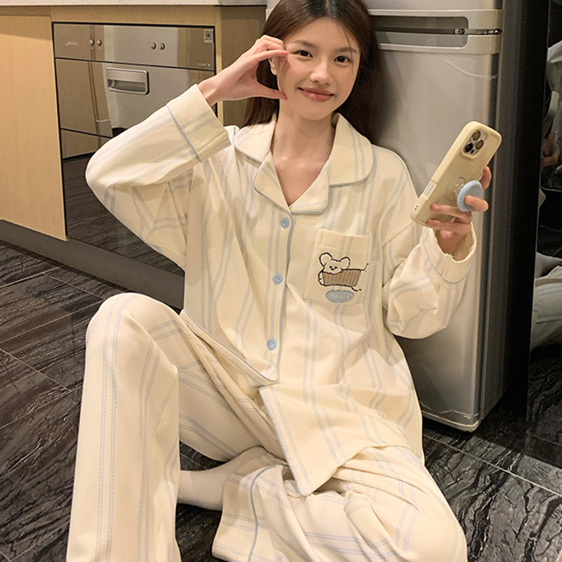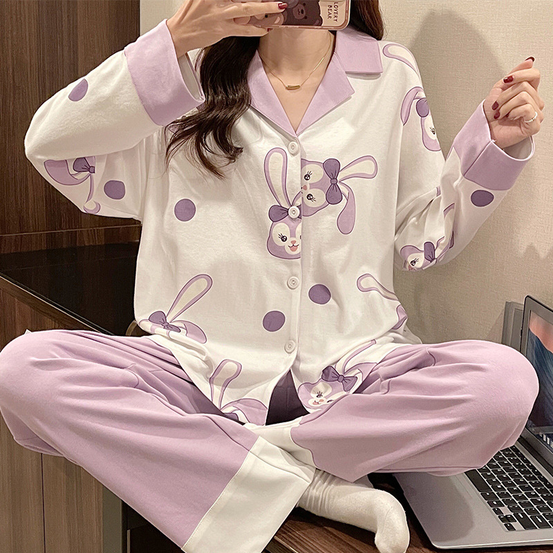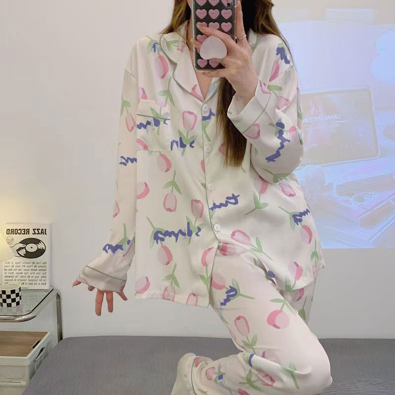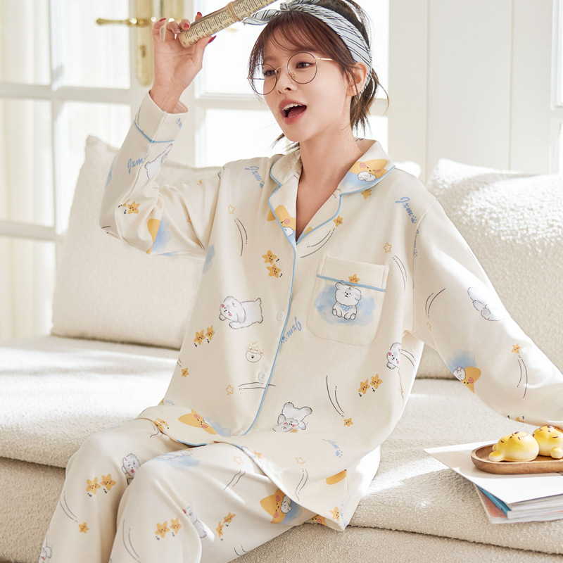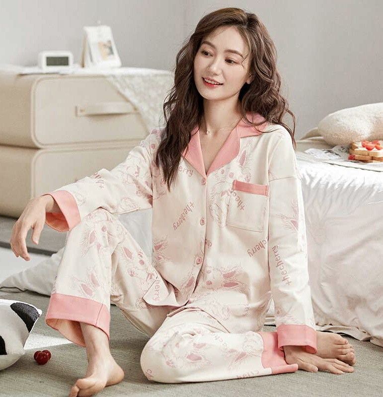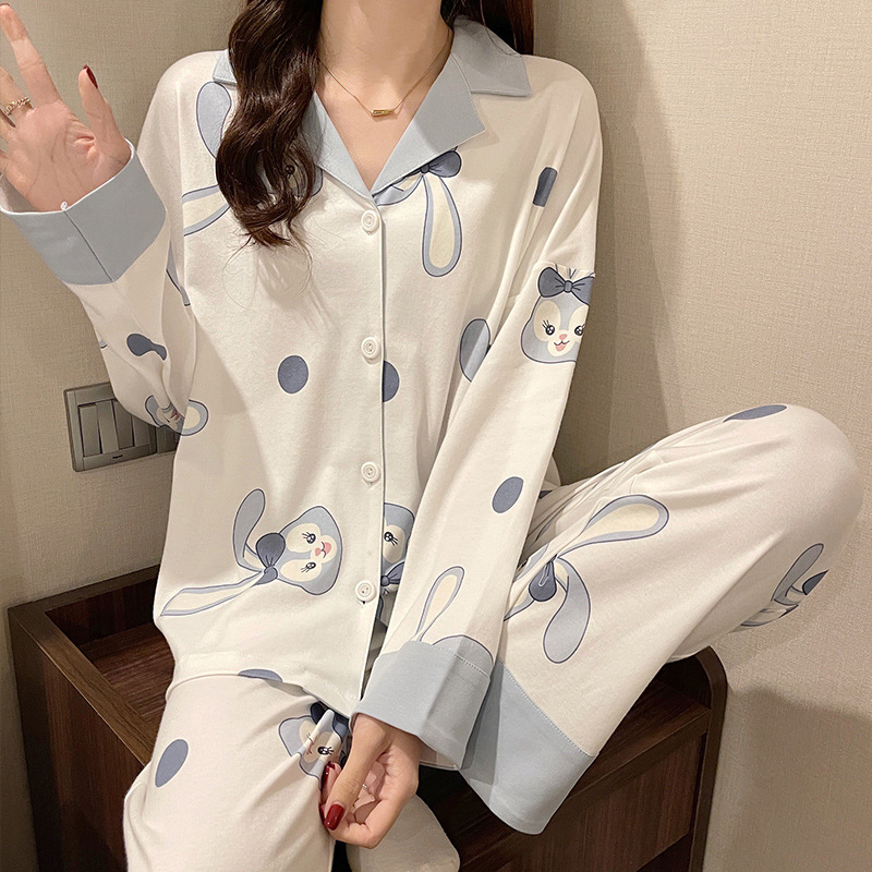 하이 엔드 뉴 스타일 잠옷 여자의 긴 소매 바지 봄과 가을 카디건 귀여운 달콤한 여자의 가정 옷 세트 얇은스토어 가기