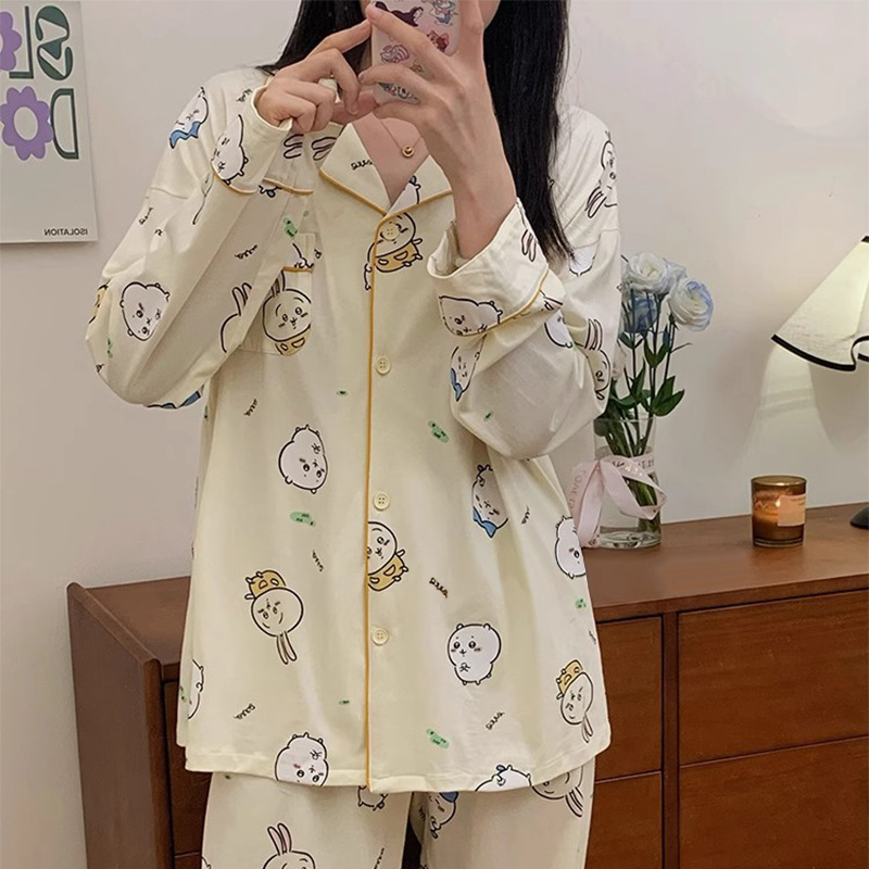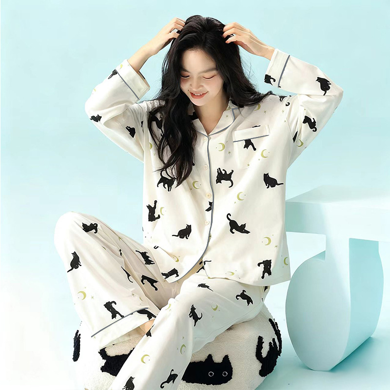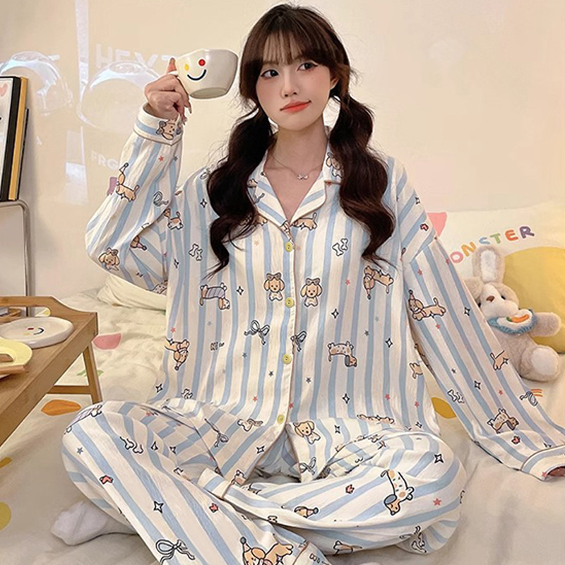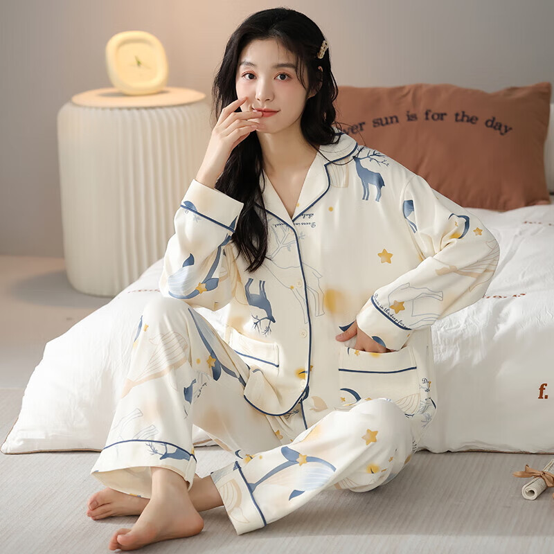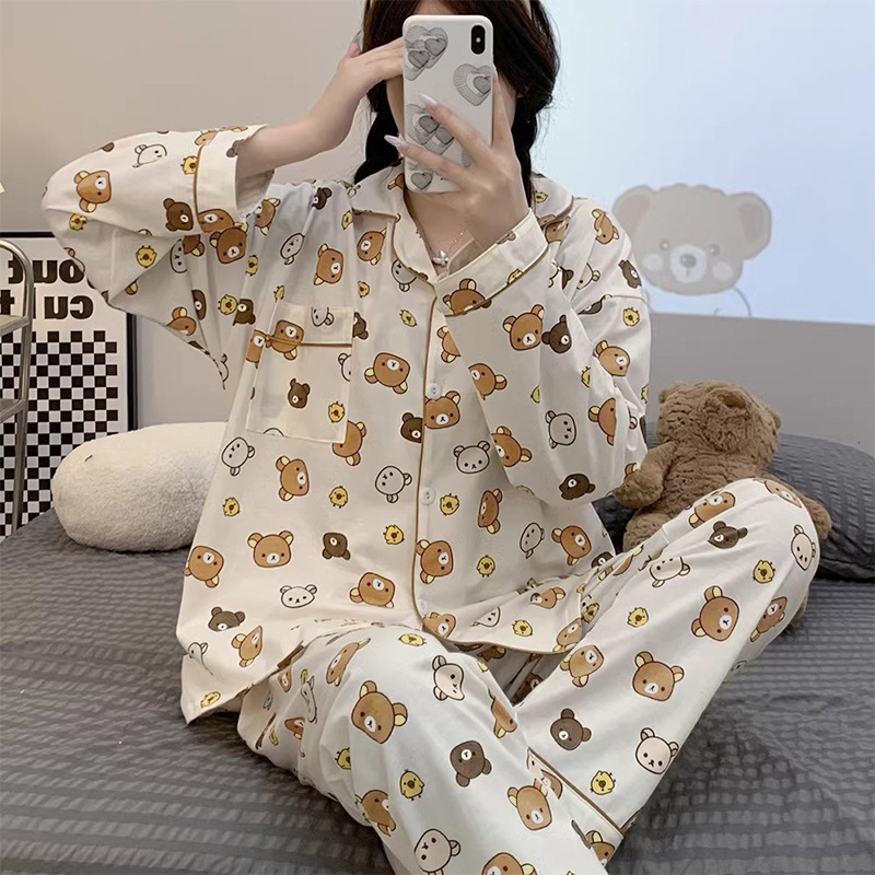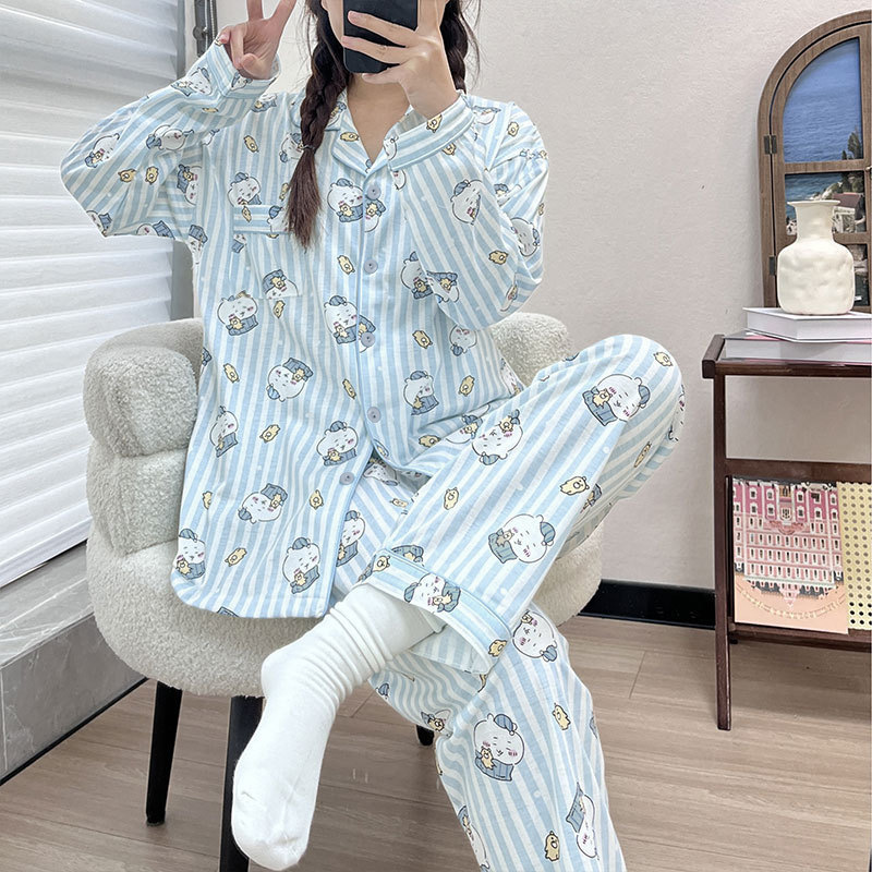 하이 엔드 뉴 스타일 잠옷 여자의 긴 소매 바지 봄과 가을 카디건 귀여운 달콤한 여자의 가정 옷 세트 얇은스토어 가기
