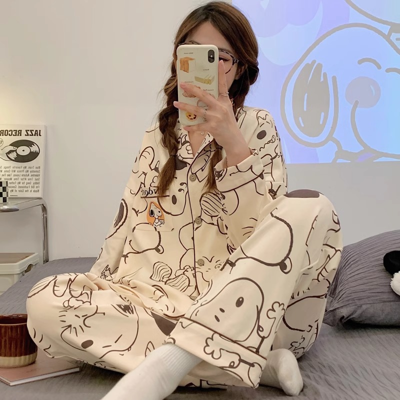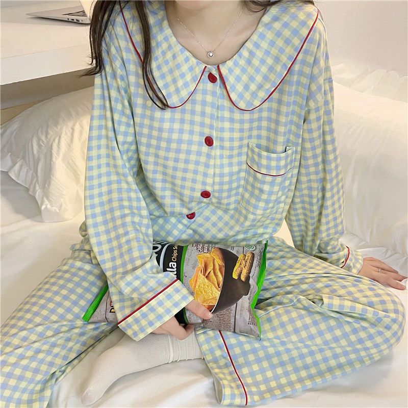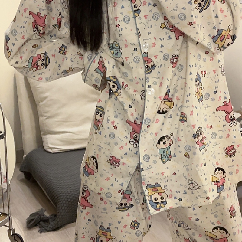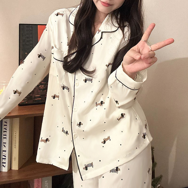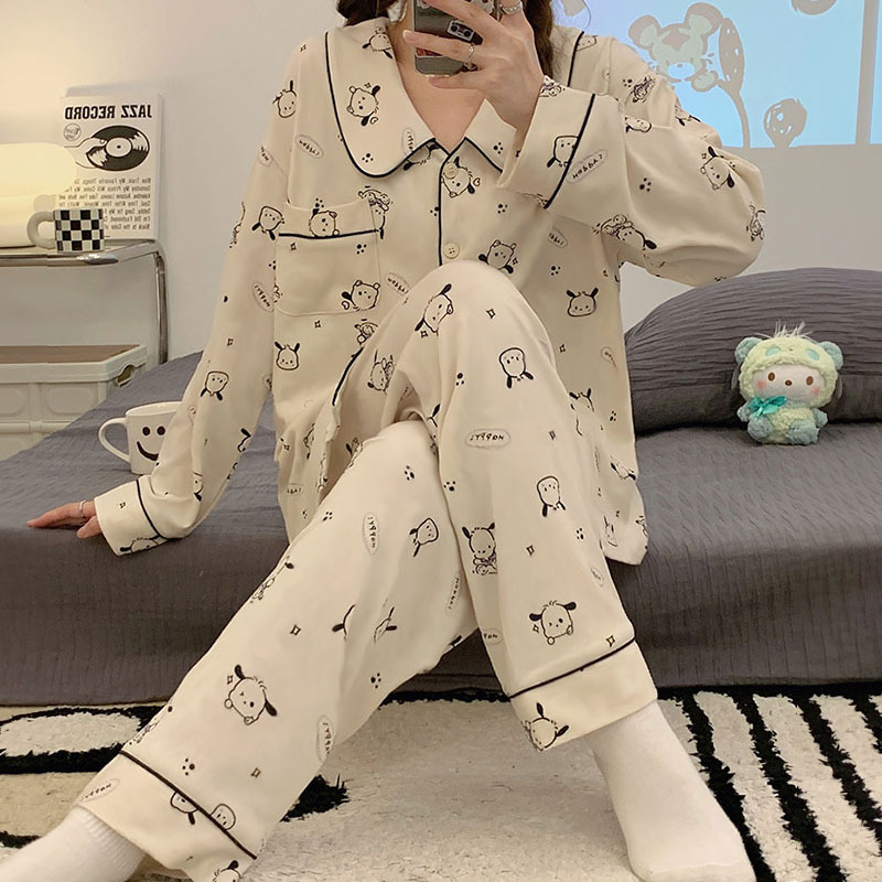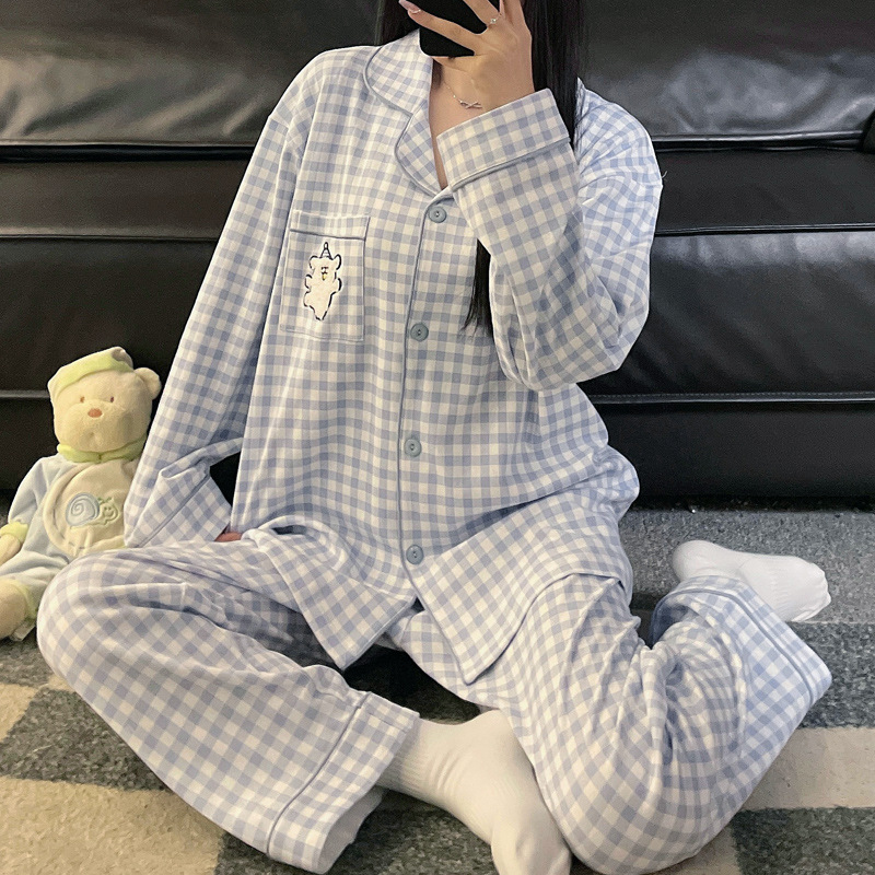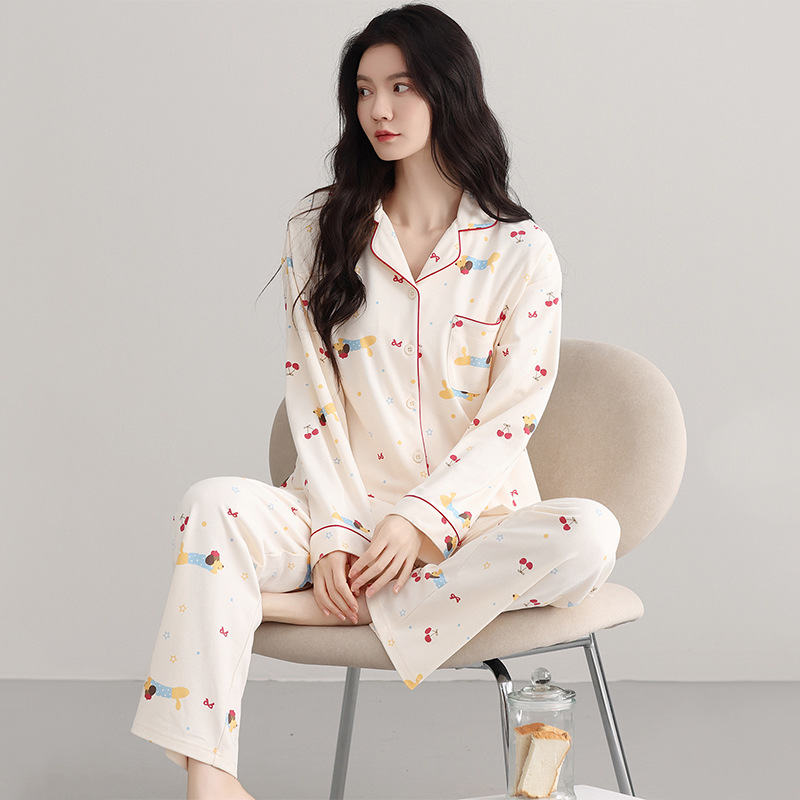 하이 엔드 뉴 스타일 잠옷 여자의 긴 소매 바지 봄과 가을 카디건 귀여운 달콤한 여자의 가정 옷 세트 얇은스토어 가기