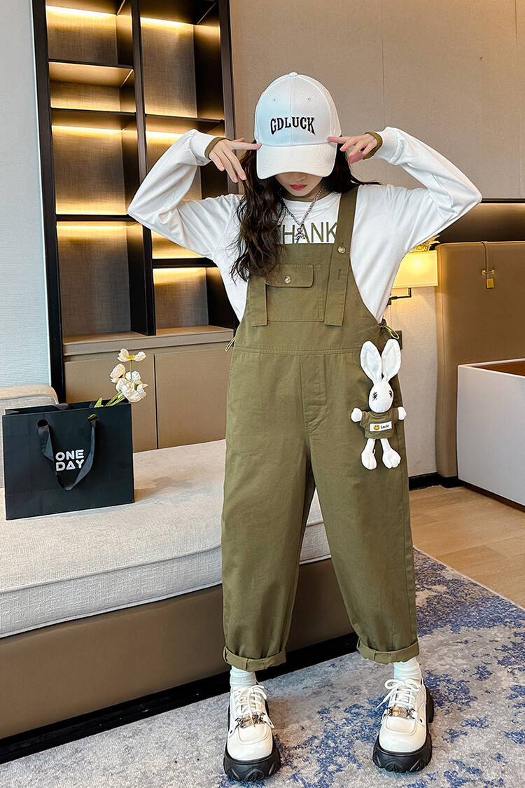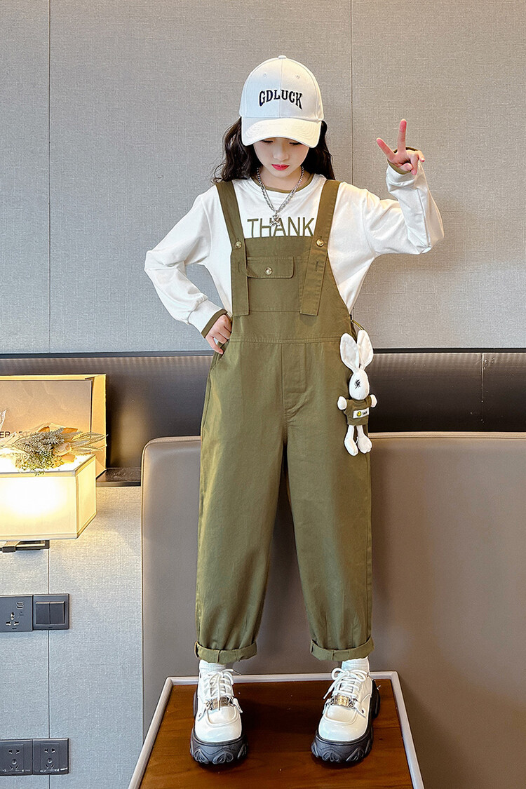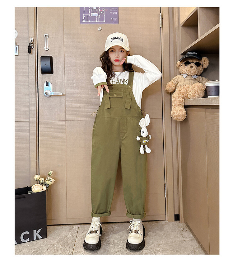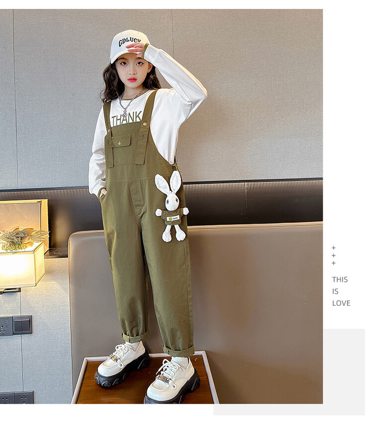 가을 세트 여아 멜빵 바지 가을 어린이 귀여운 느슨한 캐주얼 면 캐주얼 바지 대형 어린이 세련된 투피스 세트