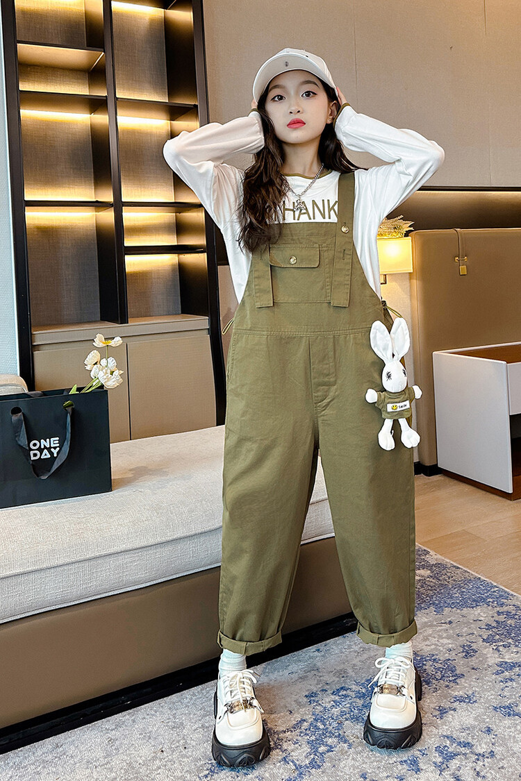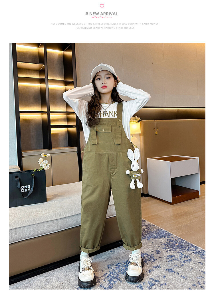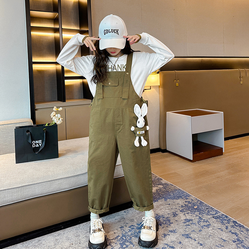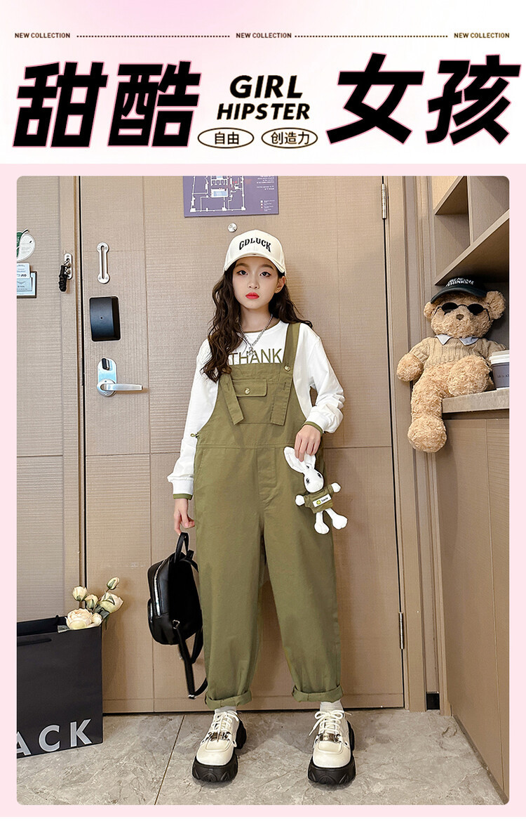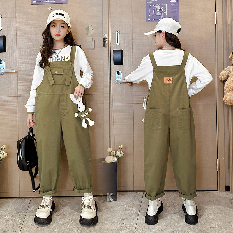 가을 세트 여아 멜빵 바지 가을 어린이 귀여운 느슨한 캐주얼 면 캐주얼 바지 대형 어린이 세련된 투피스 세트스토어 가기