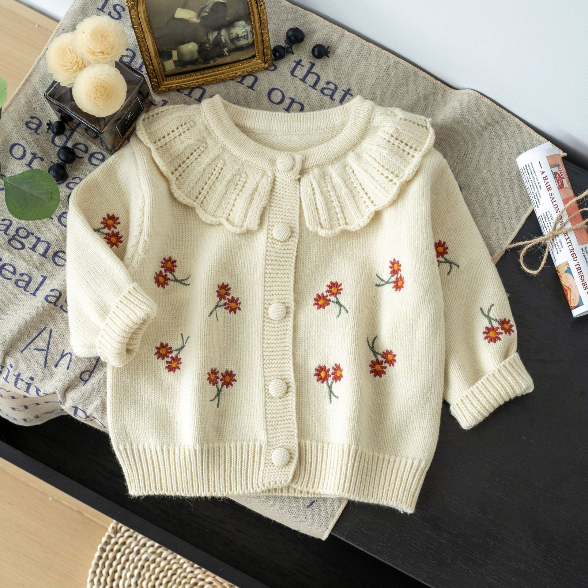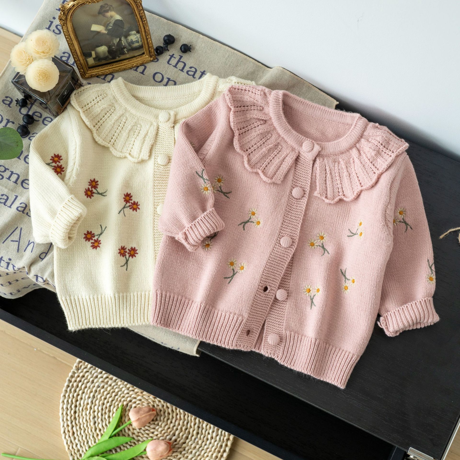 소녀를위한 새로운 아기 니트 한국 스타일 꽃 귀여운 꽃 카디건 스웨터스토어 가기