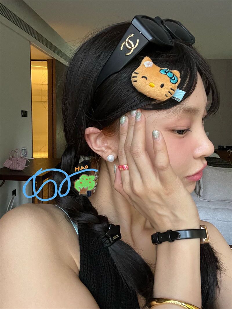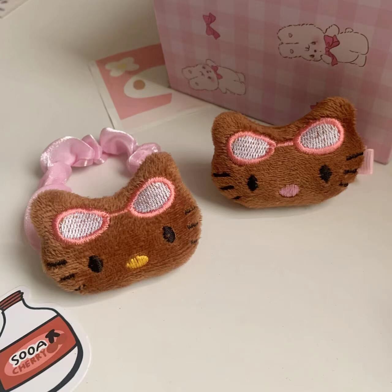 검은 피부 키티 하와이안 머리핀 헤어 로프 클립 헤어 링 머리 장식 헤어 로프 고급 머리핀 여성 헬로 키티스토어 가기