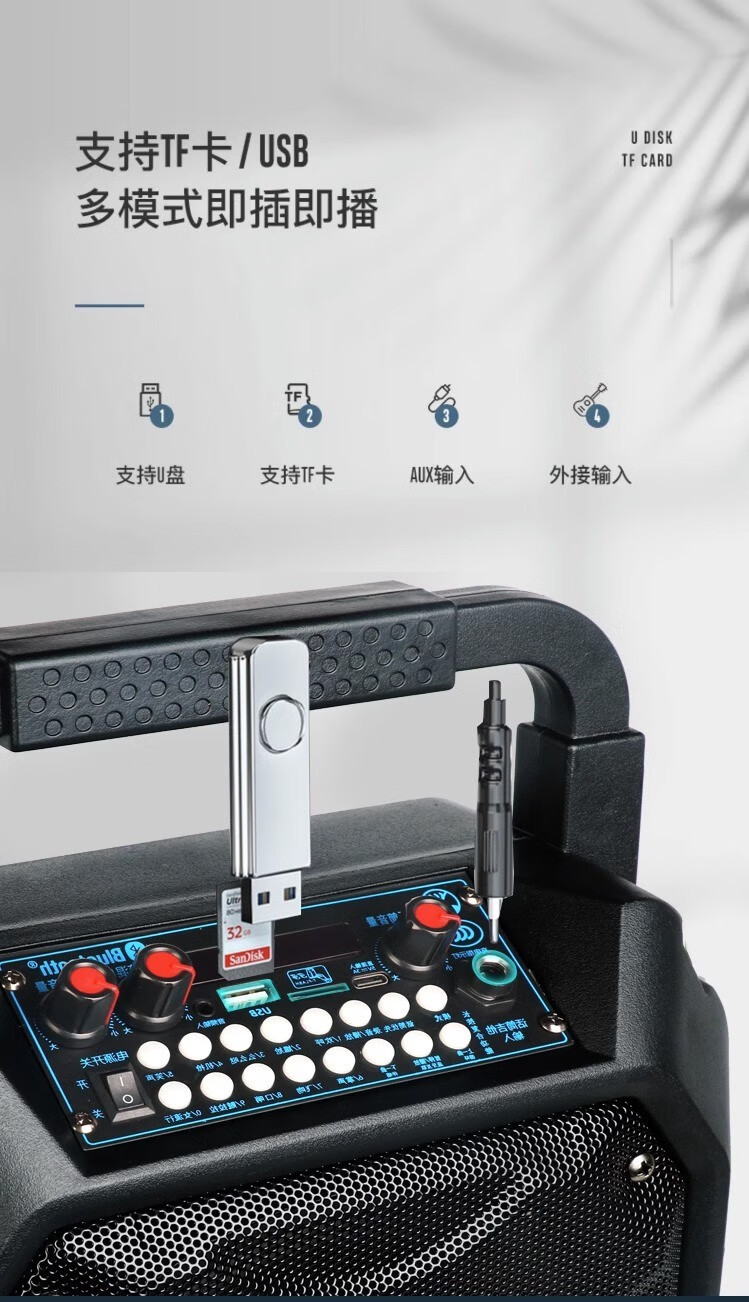 Xianke 야외 휴대용 블루투스 오디오 고출력 스퀘어 댄스 휴대용 스피커 무선 마이크 K 노래와 높은 볼륨