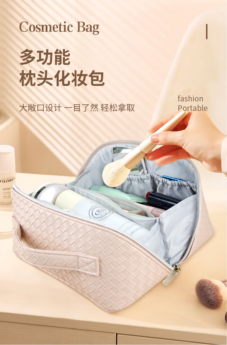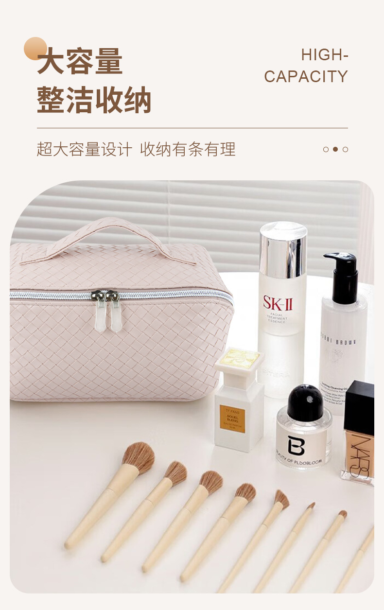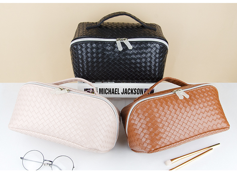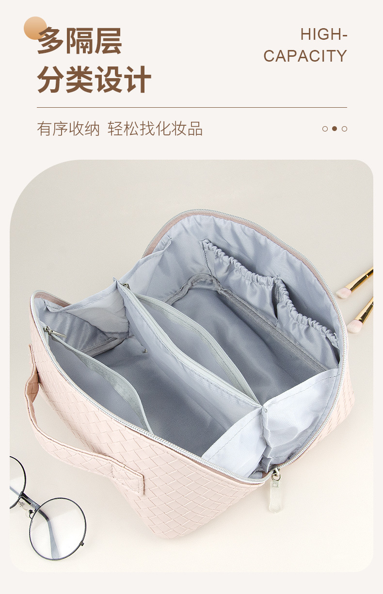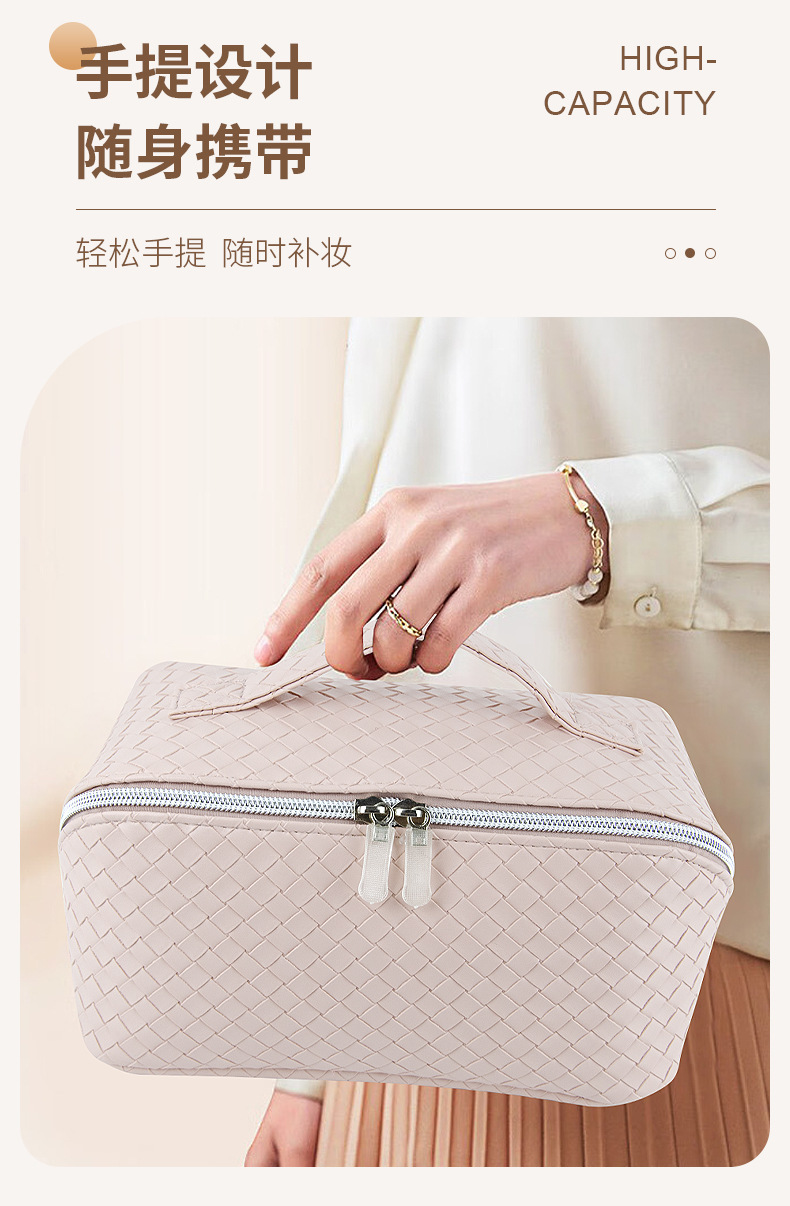 时尚便携编织纹旅行化妆包大容量高颜值旅行洗漱包多功能收纳包