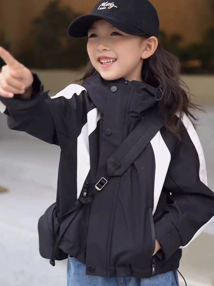 소년과 소녀 코트 새로운 2023 가을 스티치 러쉬 의류 어린이 패션 후드 탑 트렌디 소녀 코트