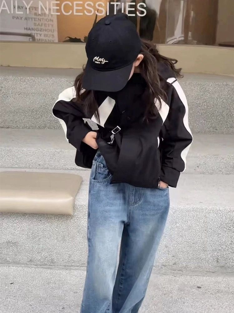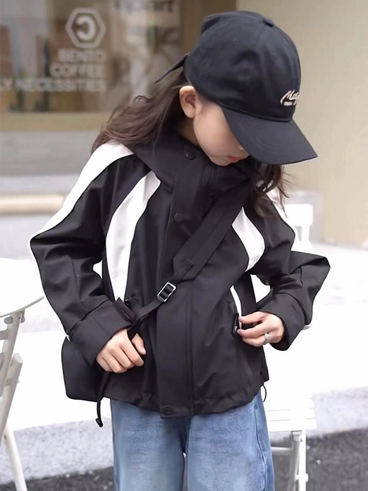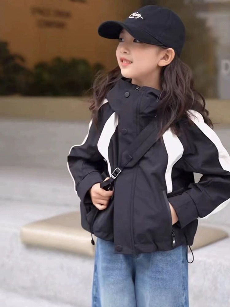 소년과 소녀 코트 새로운 2023 가을 스티치 러쉬 의류 어린이 패션 후드 탑 트렌디 소녀 코트스토어 가기