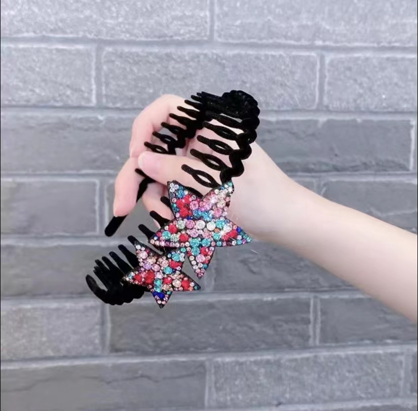 가을의 새로운 머리띠 몰려 드는 머리띠 더블 스타 머리띠 장비 머리띠 스타 머리띠 천 정신 오각 별 머리 장식 블랙스토어 가기