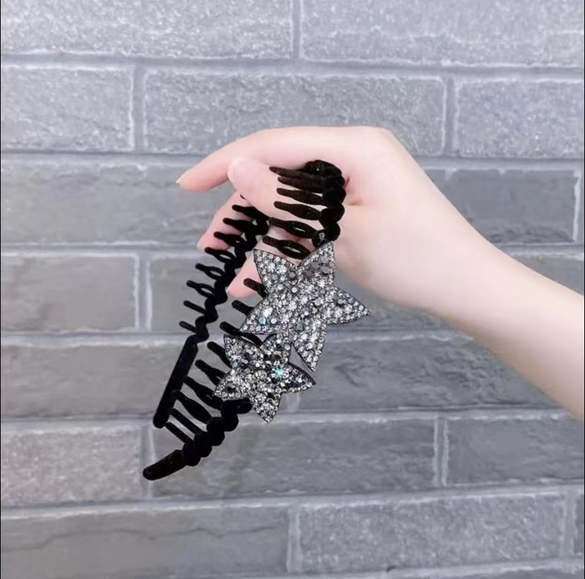 가을의 새로운 머리띠 몰려 드는 머리띠 더블 스타 머리띠 장비 머리띠 스타 머리띠 천 정신 오각 별 머리 장식 블랙