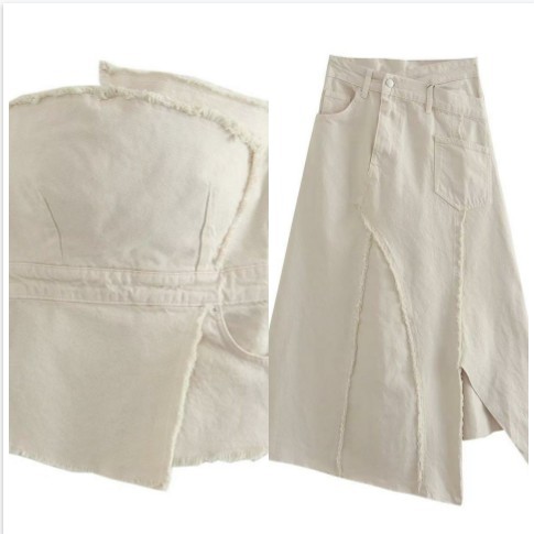 2024 가을 신상품 유럽과 미국의 국경 간 여성 비대칭 로우 엣지 바디 슈트 + 스커트 슈트 W025 9693스토어 가기