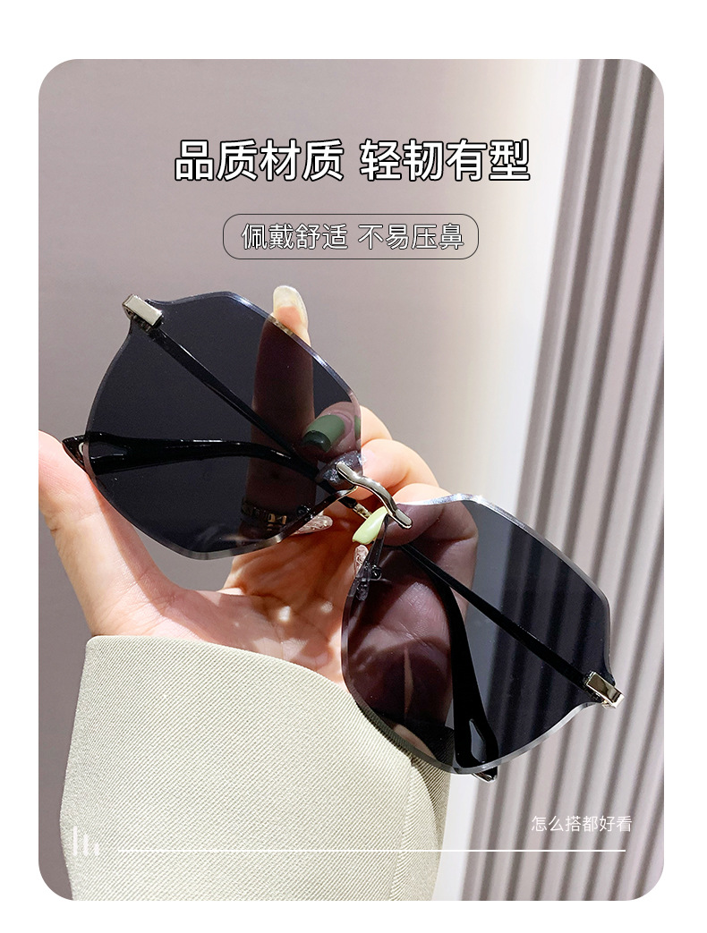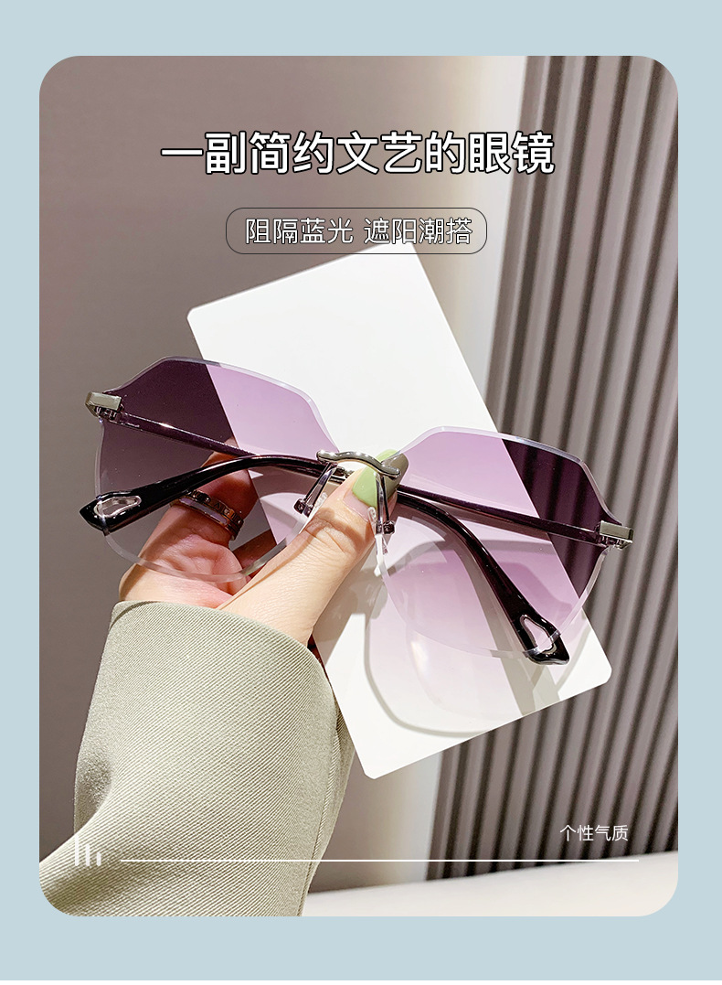 고급 프레임리스 트리밍 선글라스 여성용 신상품 라이트 럭셔리 패션 그라디언트 선글라스 자외선 차단 선글라스스토어 가기