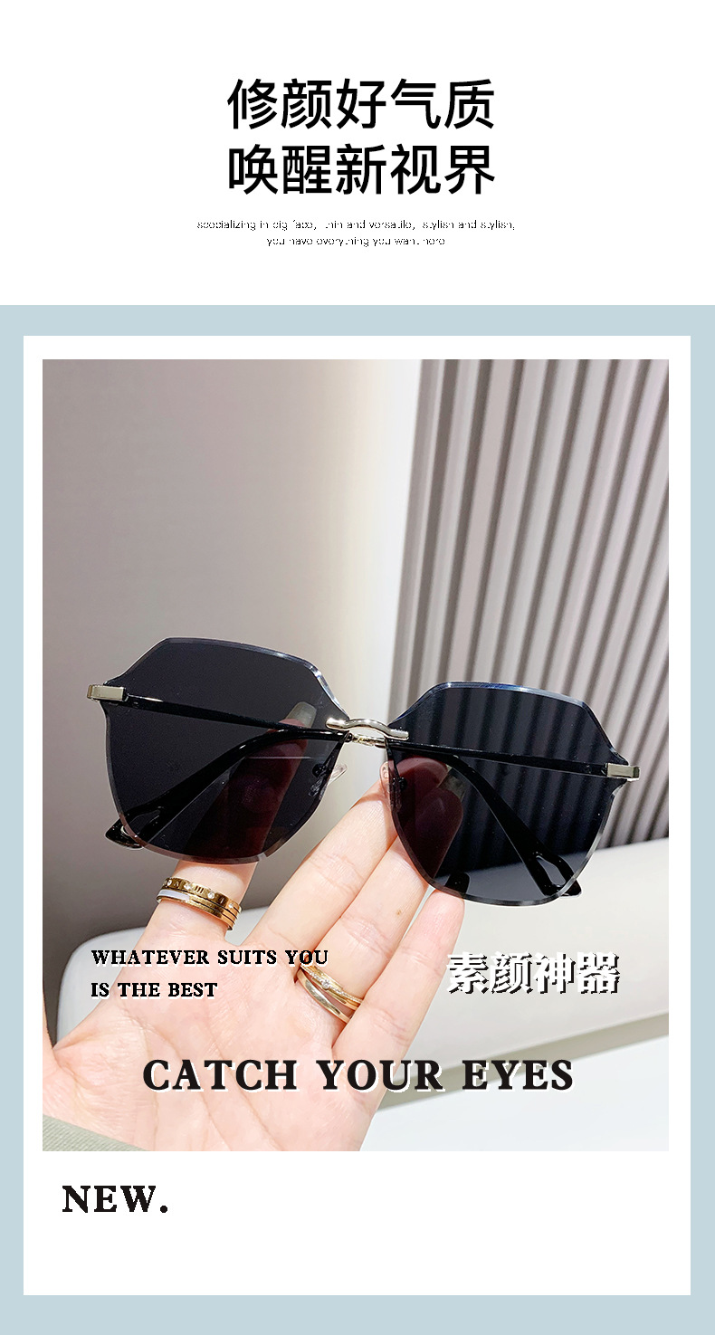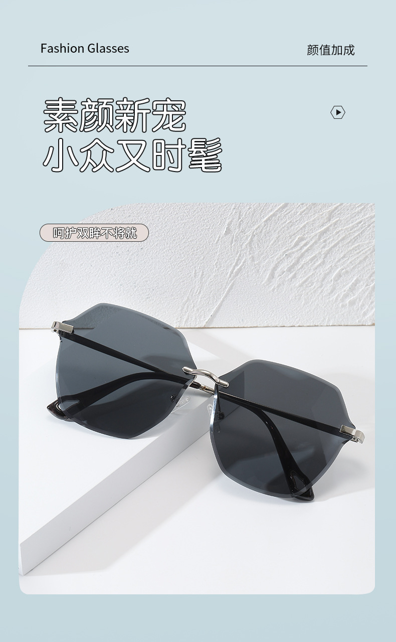 고급 프레임리스 트리밍 선글라스 여성용 신상품 라이트 럭셔리 패션 그라디언트 선글라스 자외선 차단 선글라스