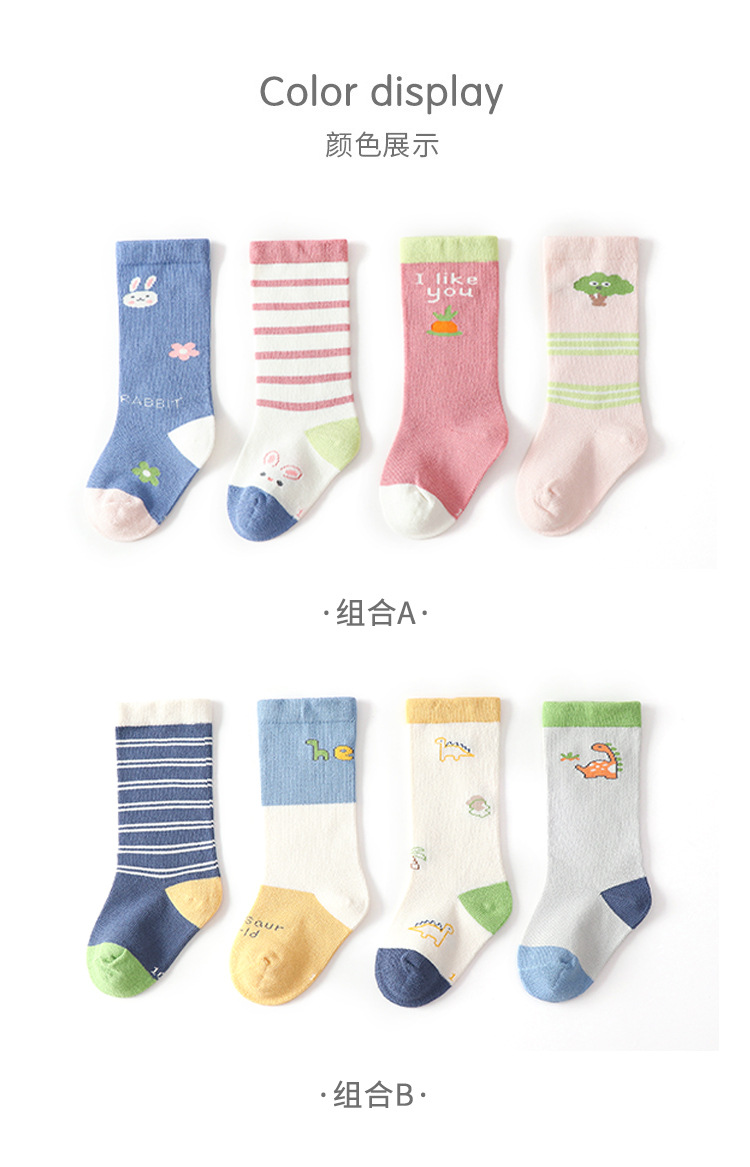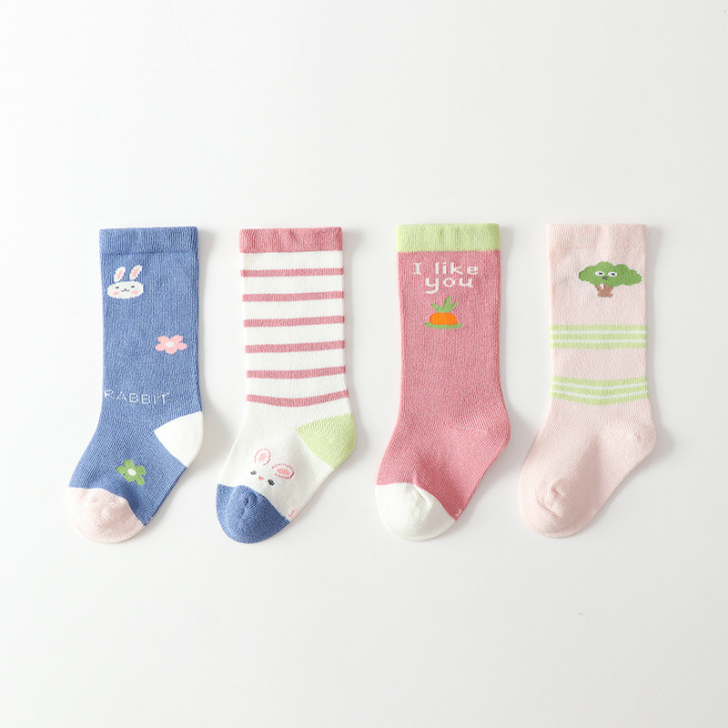 2024 봄 여름 신상품 신생아 양말 루즈핏 무봉제 다리 조이지 않는 하이탑 면 양말 아기 롱 양말스토어 가기