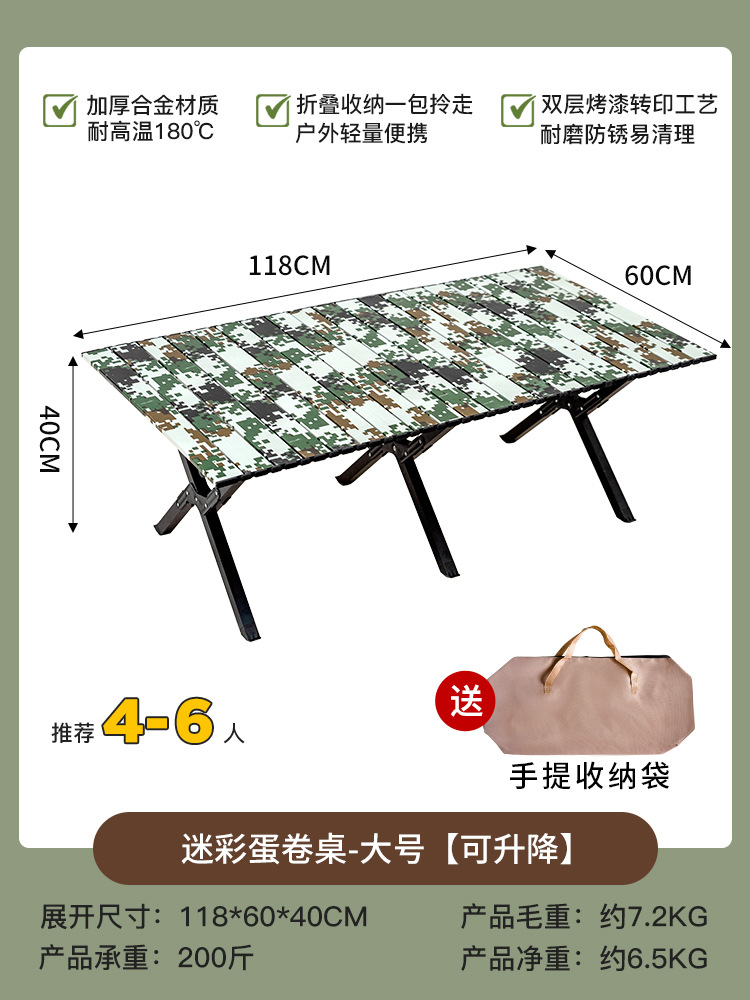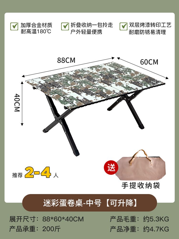 야외 캠핑 휴대용 달걀 롤 테이블 접이식 테이블 바베큐 테이블 마구간 작은 식탁 피크닉 테이블 위장 테이블 세트스토어 가기