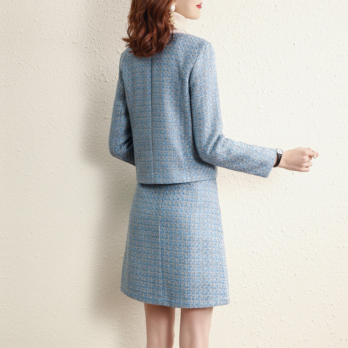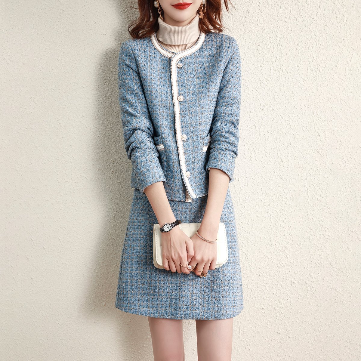 샤오샹풍 세트 2025 신상 여성 패션 스타일리시한 나이를 잊게 하는 명사 스타일 가디건 코트 하이웨이스트 스커트 투피스 세트 겨울용스토어 가기