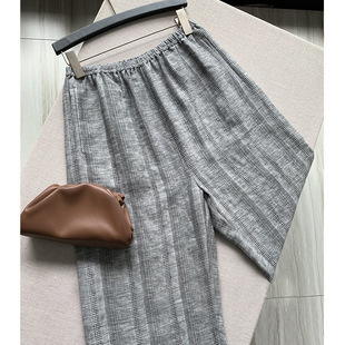 设计感色织条纹亚麻阔腿裤长裤女2025秋季新款气质时髦直筒休闲裤
