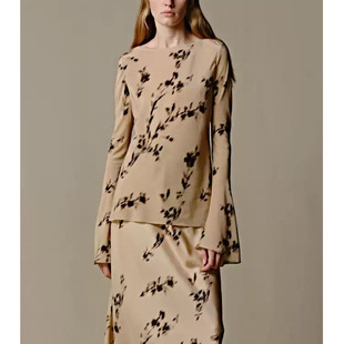【LE定单】新中式国风高级轻奢桑蚕丝花影长袖上衣女艺术印花衬衫