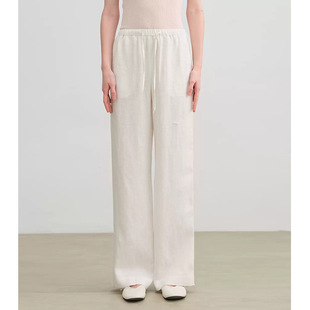 2025夏季新款宽松直筒裤长裤女松紧腰抽绳高级轻奢亚麻阔腿休闲裤