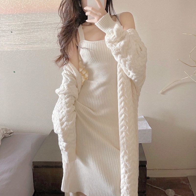 달콤하고 부드러운 니트 슈트 스커트 여성용 가을 겨울 2026 신상 우아한 가디건 스웨터 스커트 투피스 세트스토어 가기