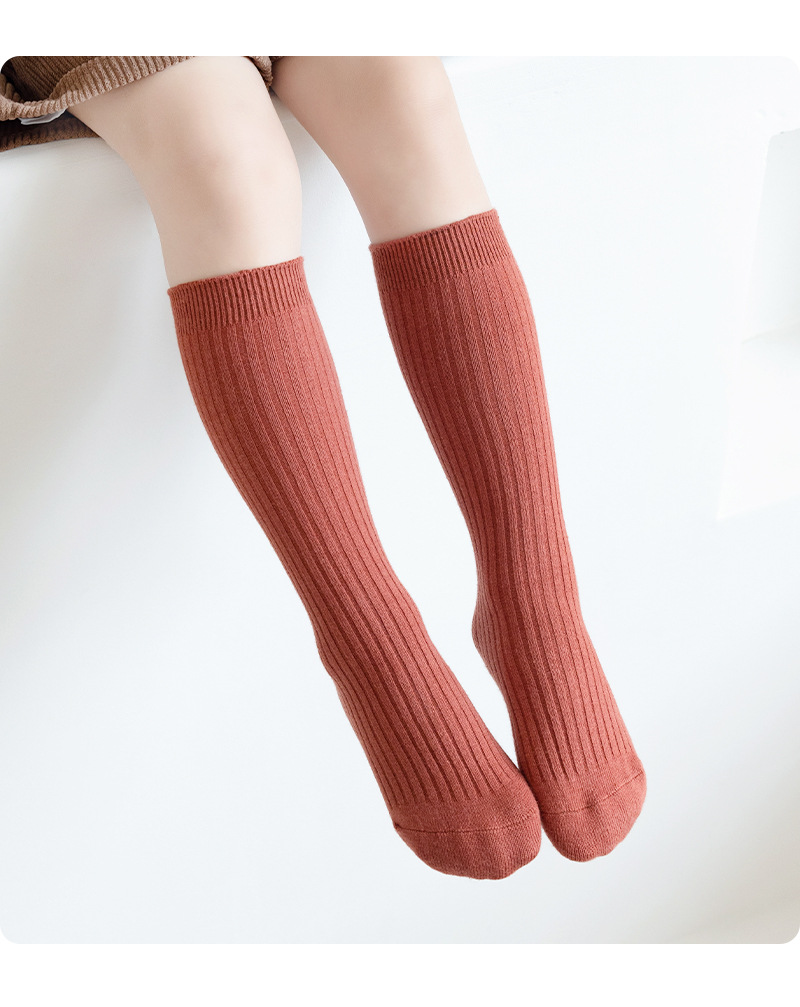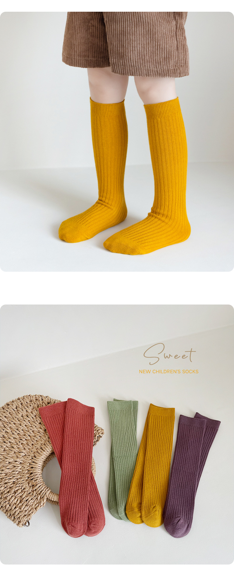 단색 이중 바늘 어린이 양말 2025 가을 겨울 신상 캔디 컬러 스트라이프 양말 남녀 공용 종아리 양말 도매