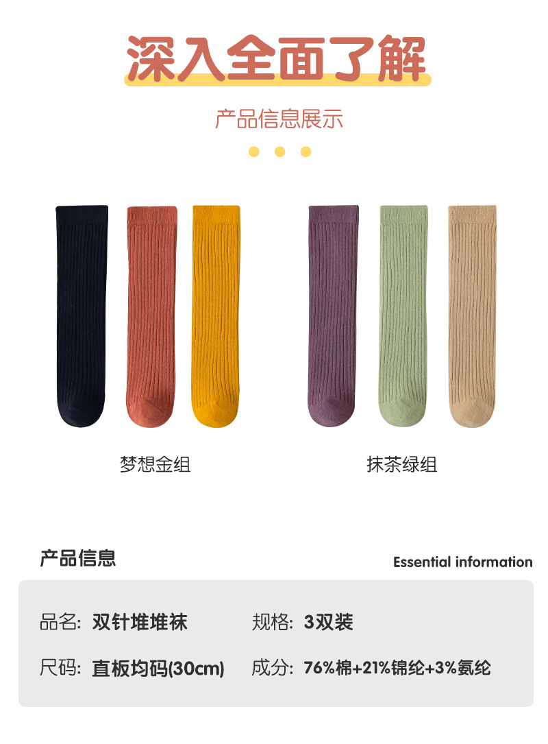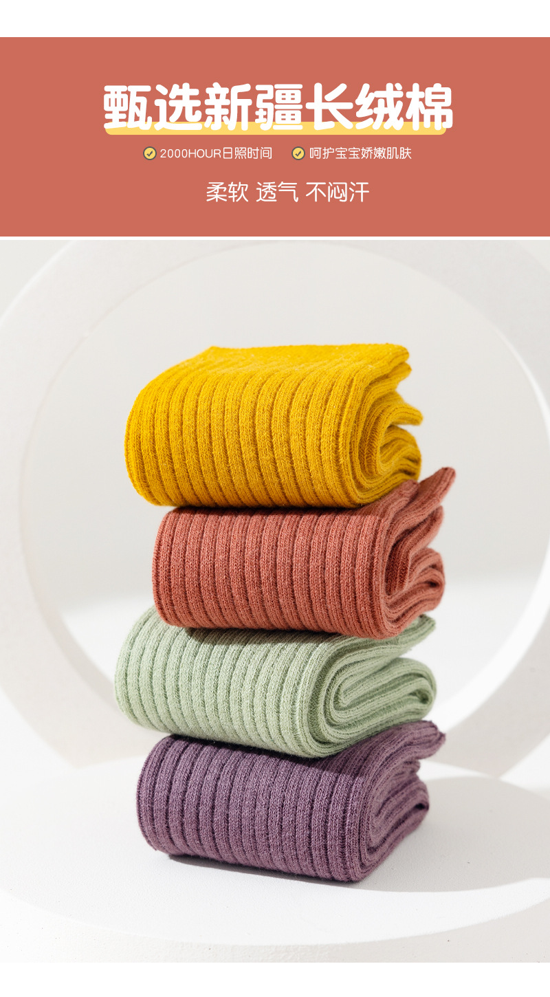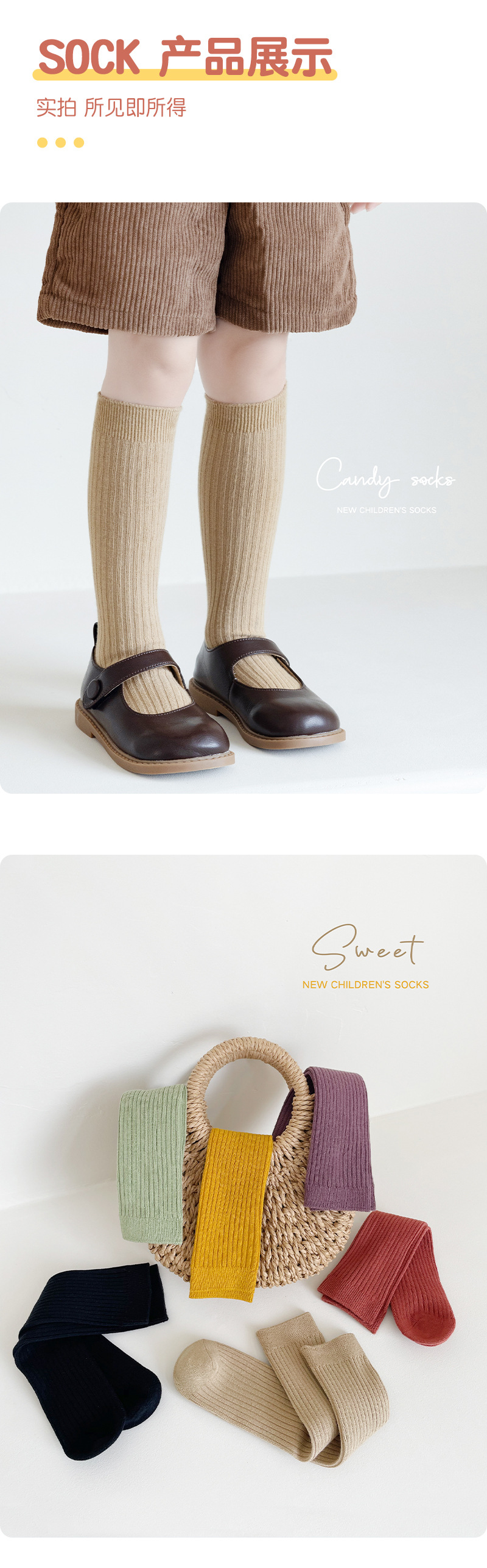 단색 이중 바늘 어린이 양말 2025 가을 겨울 신상 캔디 컬러 스트라이프 양말 남녀 공용 종아리 양말 도매스토어 가기