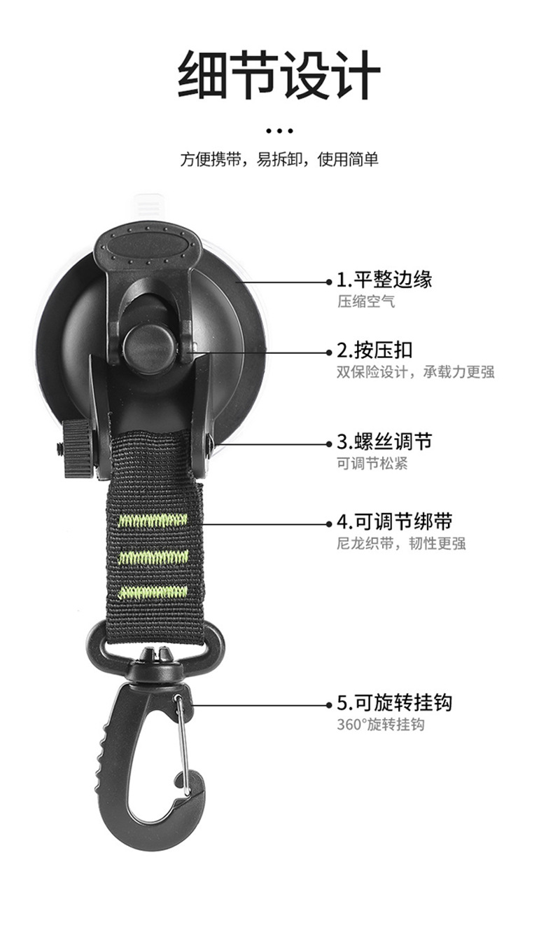 • 흡입 컵 후크 웨빙 버클 블랙 360 도 회전
