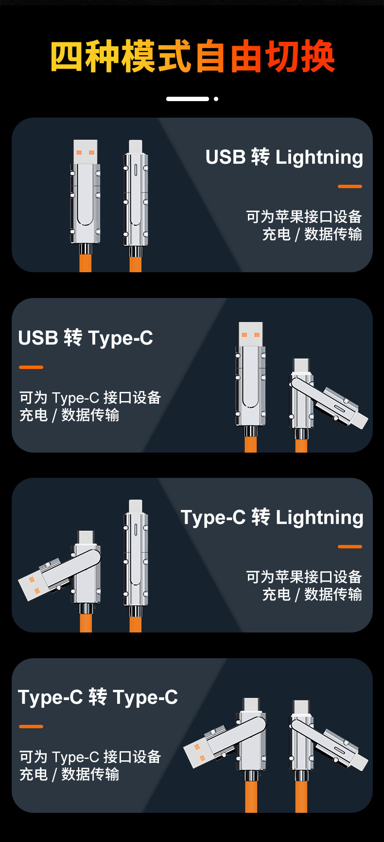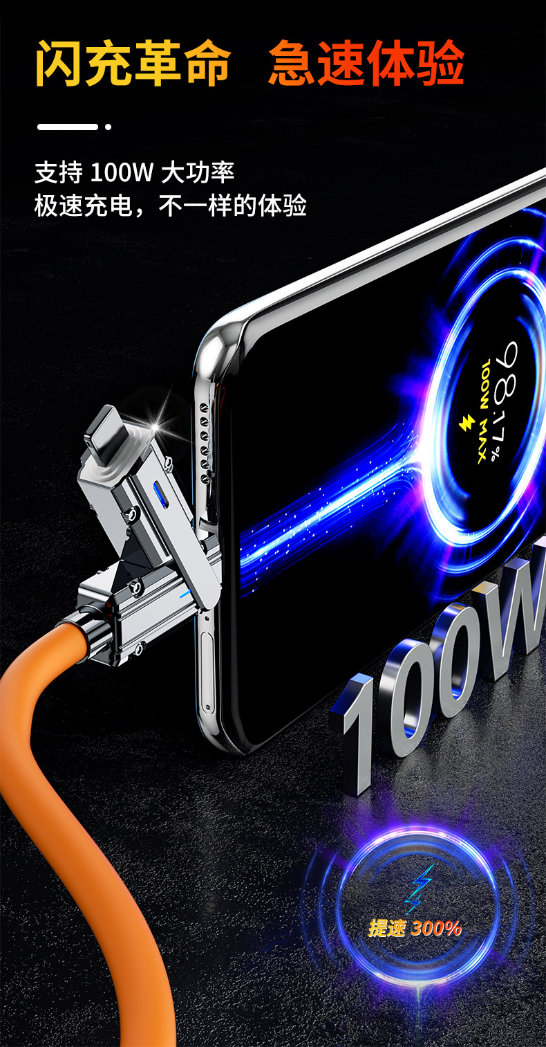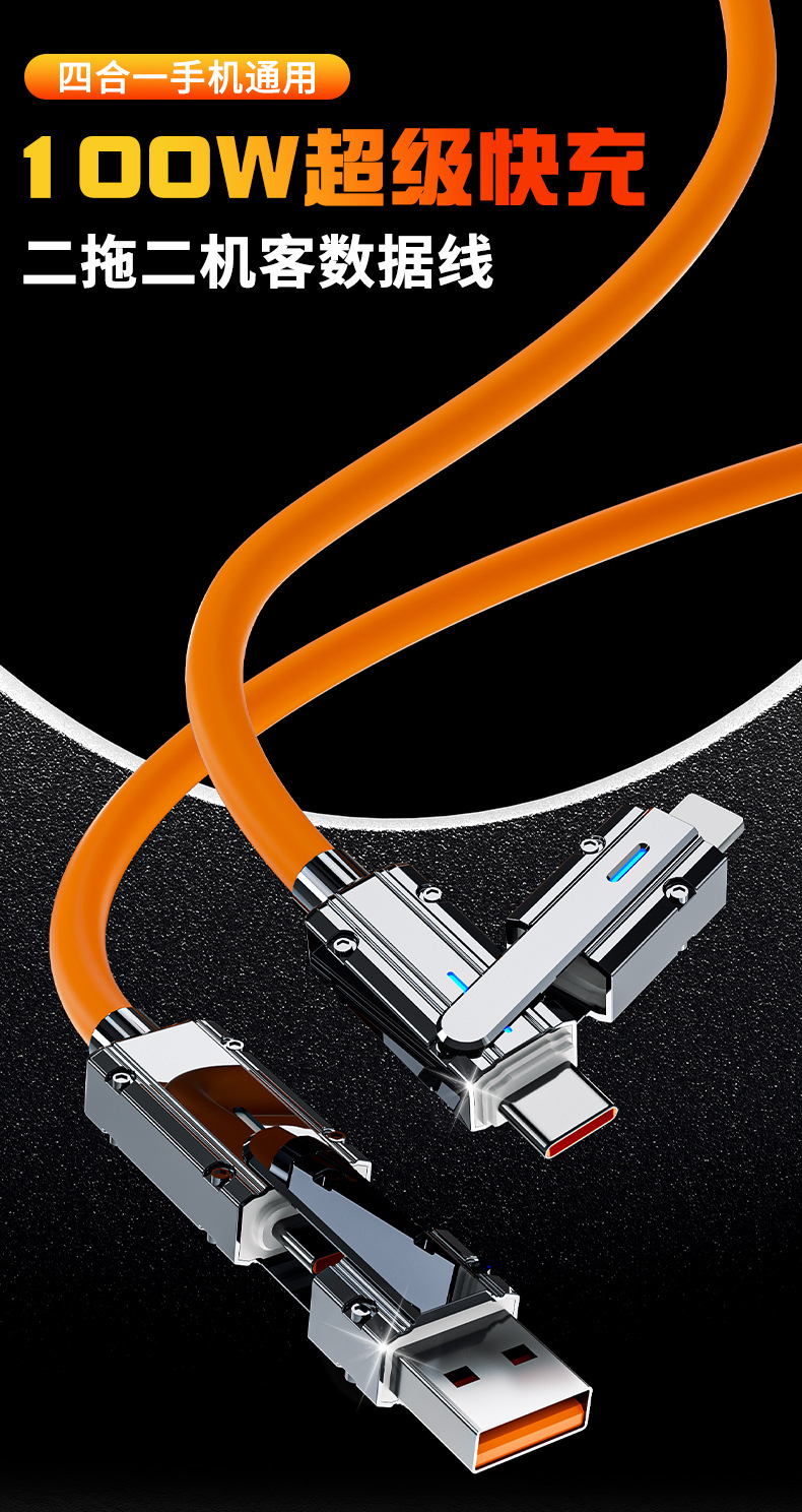 4-in-1 고속 충전 데이터 케이블, 화웨이 60W 및 애플 1627W 충전 케이블용, 공장 직영스토어 가기