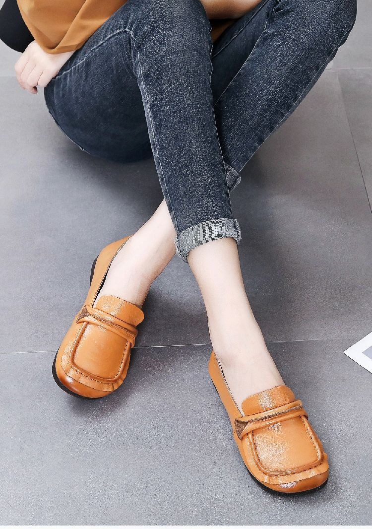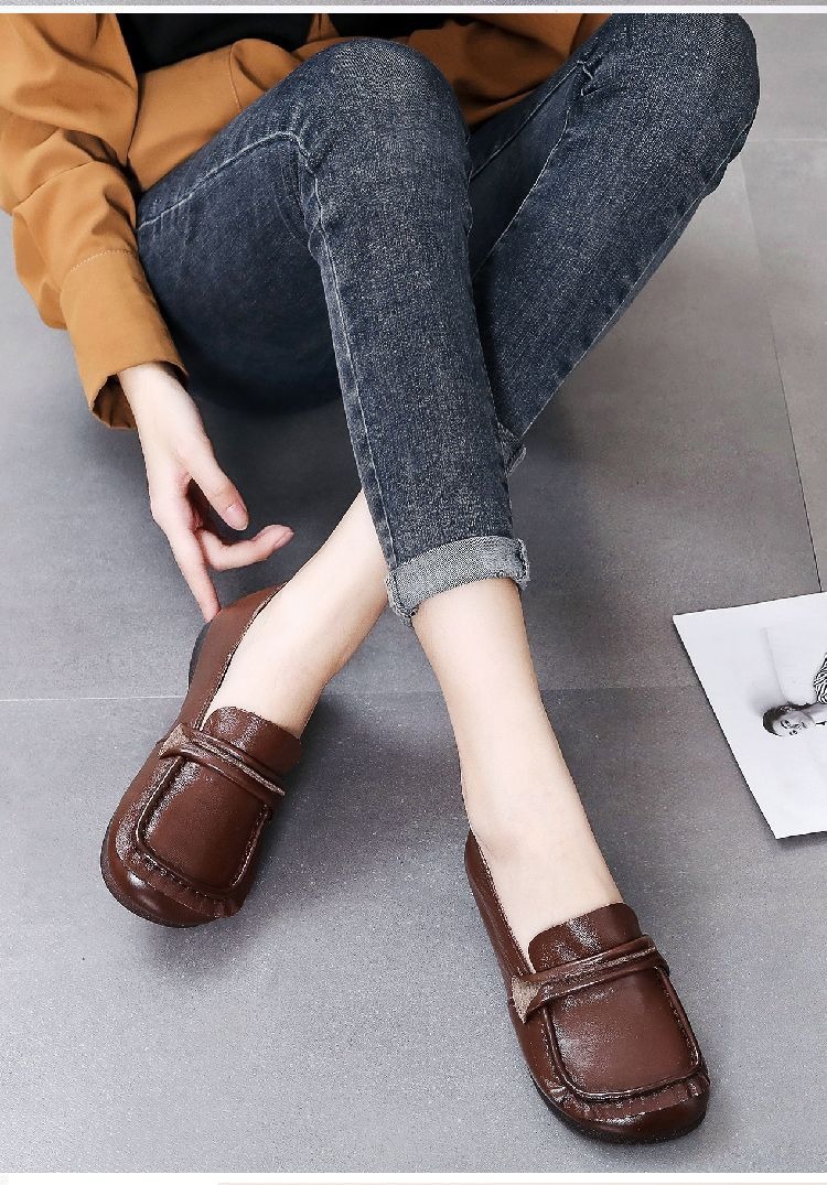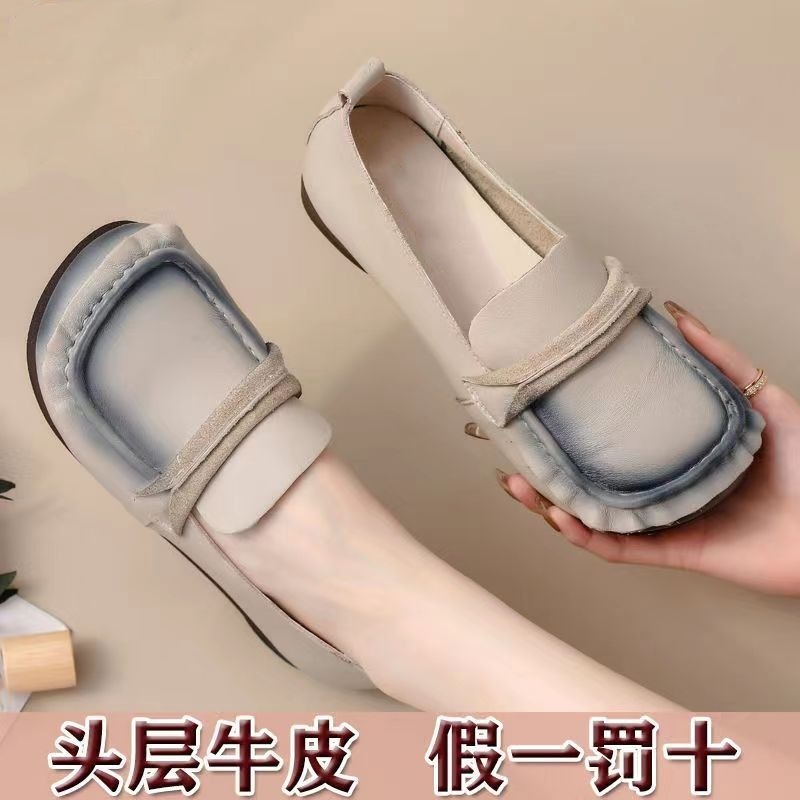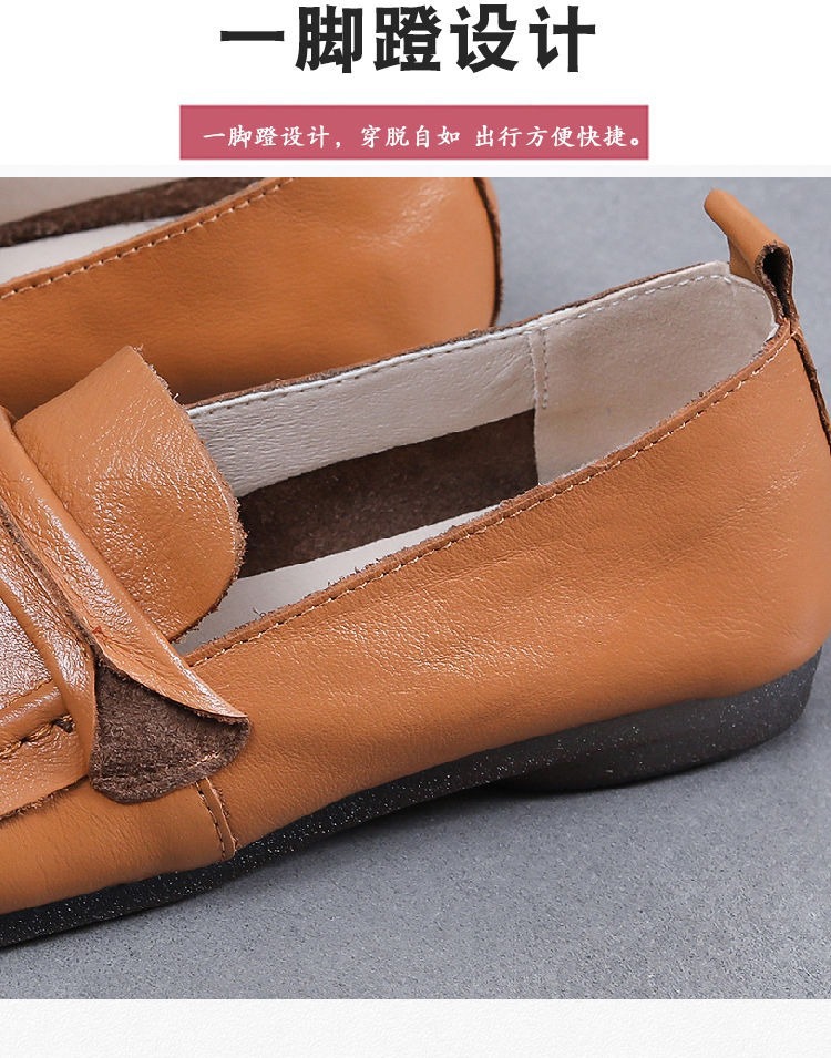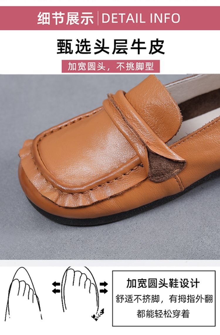탑 레이어 소가죽 힘줄 부드러운 바닥 콩 신발 경량 여성용 가죽 신발 정품 가죽 와이드 발 뚱뚱한 발 엄마 신발 플랫 여성 신발