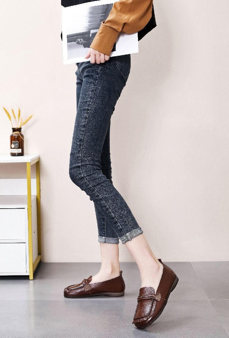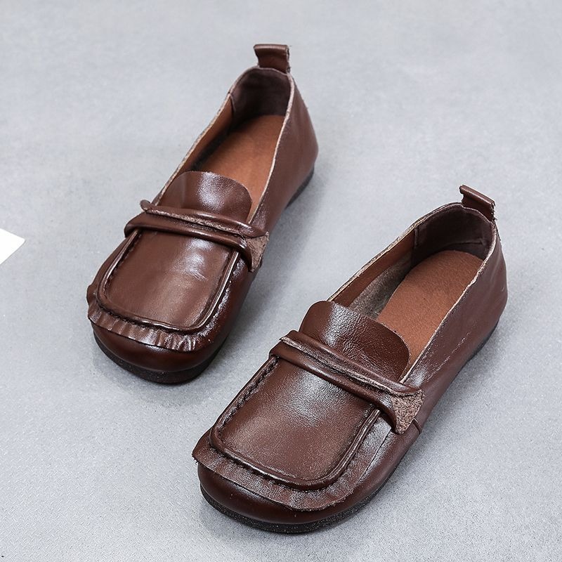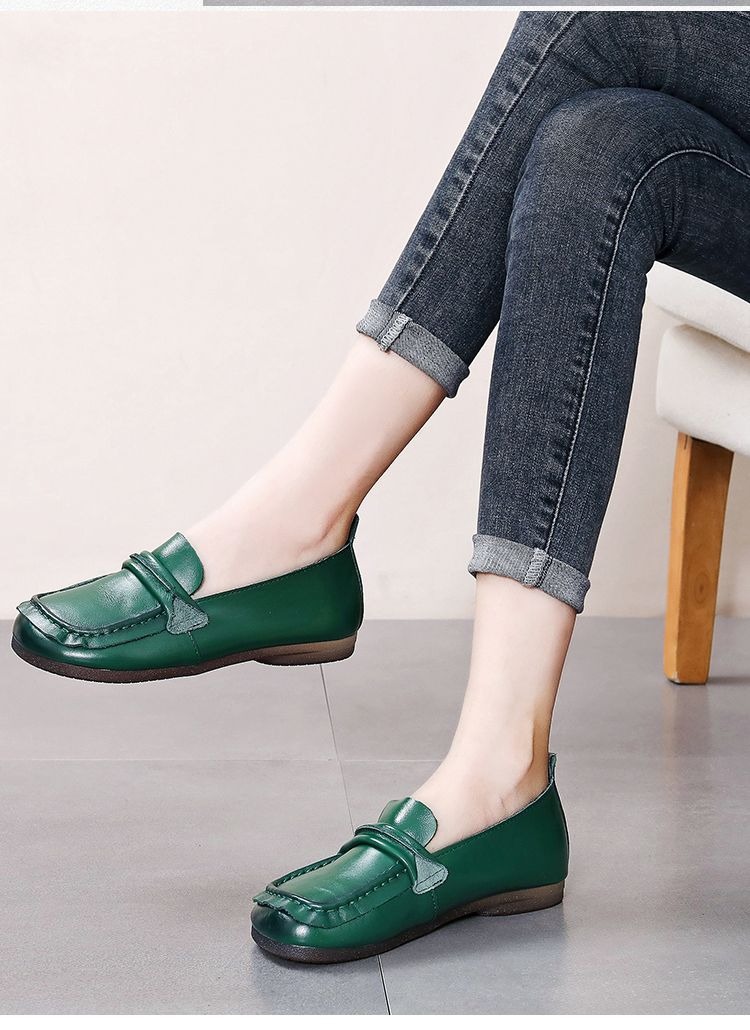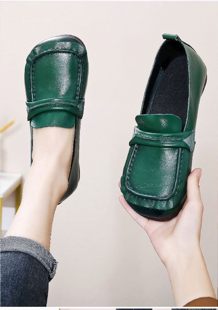 탑 레이어 소가죽 힘줄 부드러운 바닥 콩 신발 경량 여성용 가죽 신발 정품 가죽 와이드 발 뚱뚱한 발 엄마 신발 플랫 여성 신발