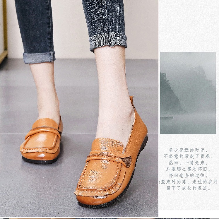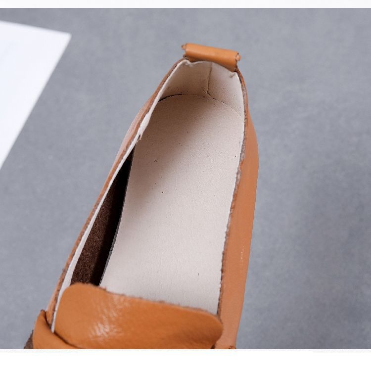 탑 레이어 소가죽 힘줄 부드러운 바닥 콩 신발 경량 여성용 가죽 신발 정품 가죽 와이드 발 뚱뚱한 발 엄마 신발 플랫 여성 신발스토어 가기