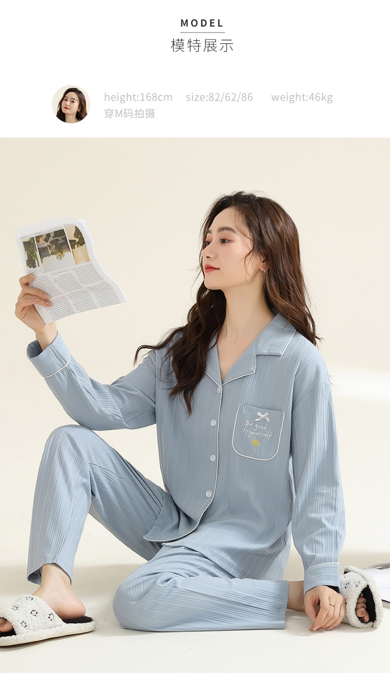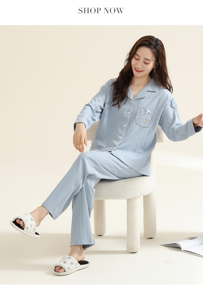 【특가 세일】100% 순면 여성용 잠옷, 순면 가을 겨울 긴팔 긴바지 가디건, 심플한 여성 홈웨어스토어 가기