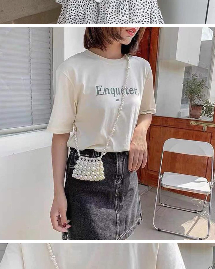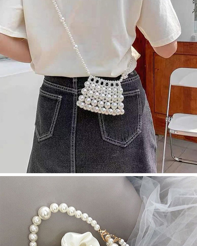 진주 가방 여성의 인터넷 유행 작은 가방 크로스 바디 가방 모든 일치 미니 빈티지 핸드-짠 Ins 진주 가방 구슬 가방