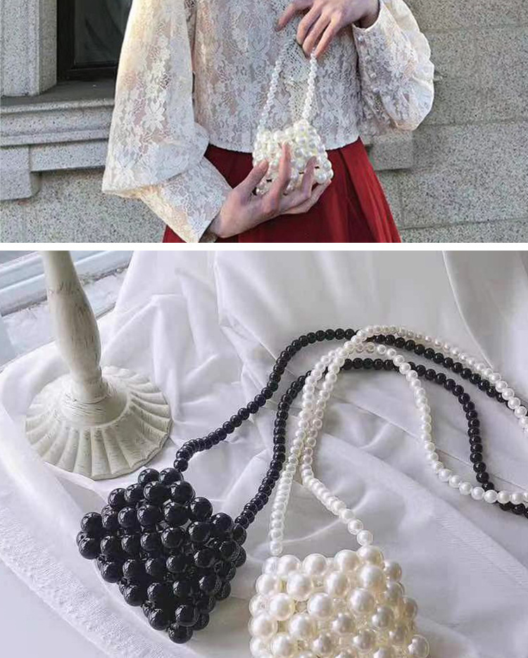 진주 가방 여성의 인터넷 유행 작은 가방 크로스 바디 가방 모든 일치 미니 빈티지 핸드-짠 Ins 진주 가방 구슬 가방스토어 가기