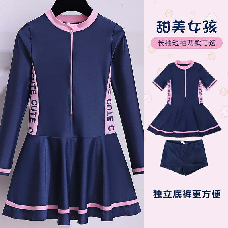 어린이 수영복 여아 길고 짧은 소매 Siaman 여아 새로운 스타일 중소 규모 어린이 귀여운 공주 원피스 아기 온천 수영복