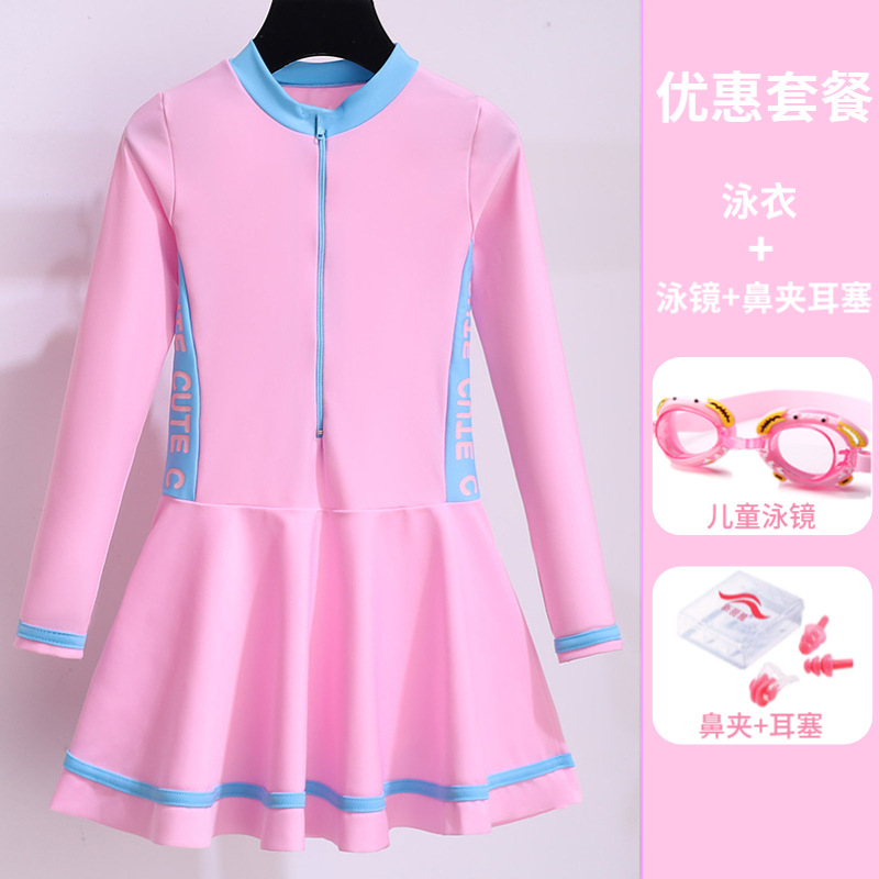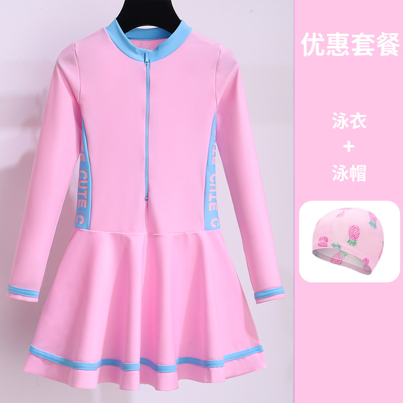 • 핑크-긴 소매 + 수영 모자