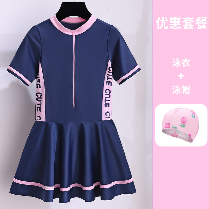 • 네이비-짧은 소매 + 수영 모자