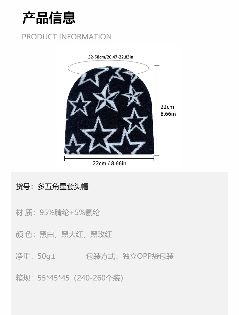 5 각형 스타 니트 모자 남성용 및 여성용 자카드 모자 유럽과 미국 패션 모자 힙합 모자 야외 스포츠 트렌디 한 스트리트 크로스 보더 가을